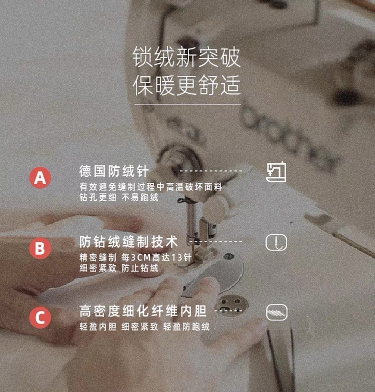 好的鹅绒才能成就一件好的羽绒服,90%白鹅绒,零下20度都不在话下。
