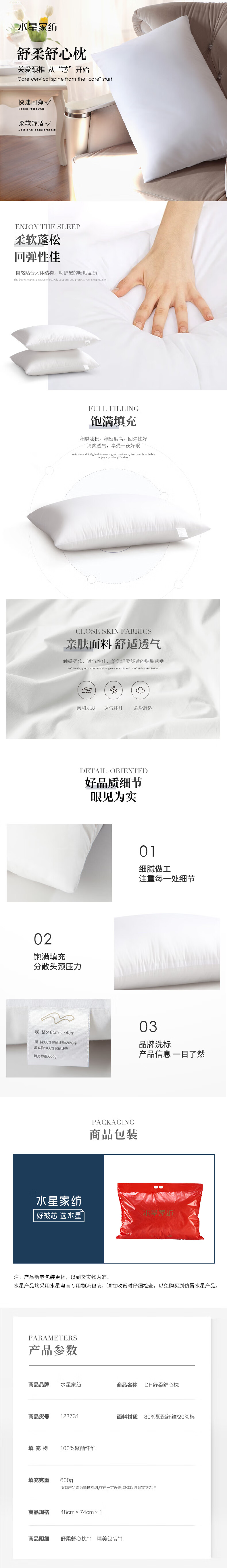 水星家纺 DH舒柔舒心枕48cm×74cm