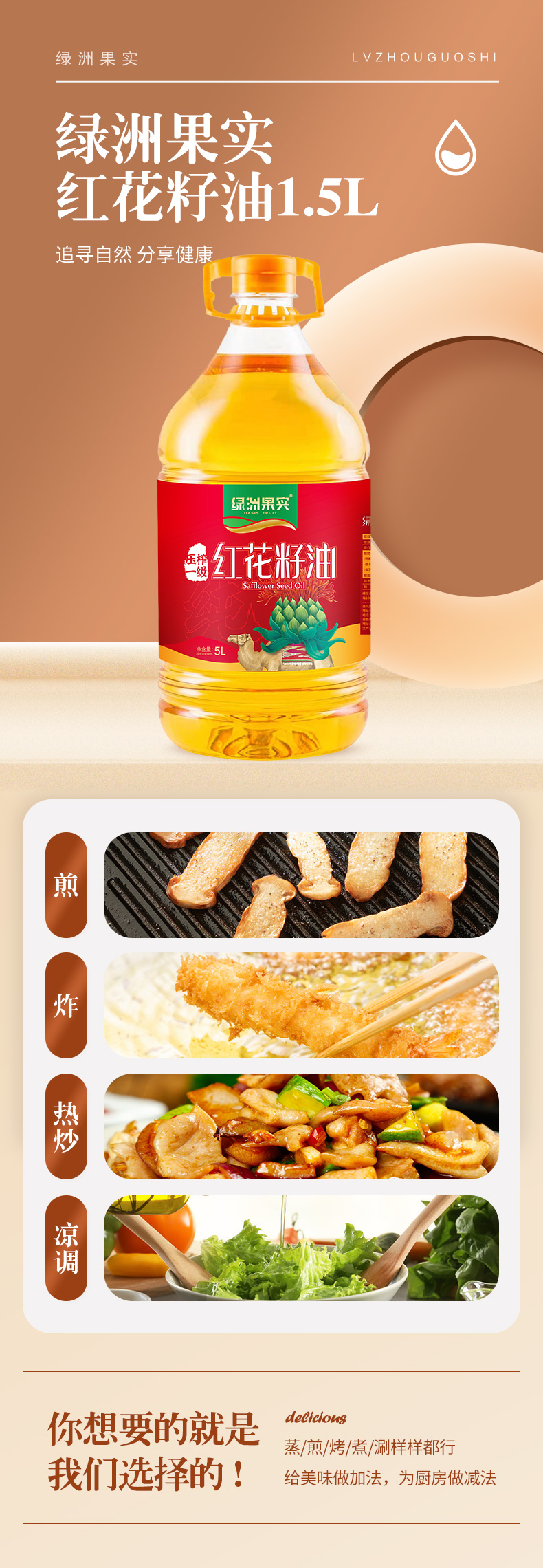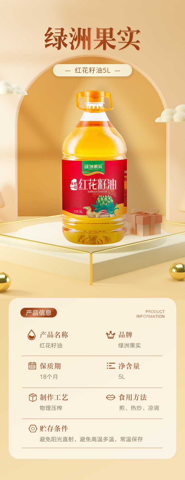 绿洲果实红花籽油5L