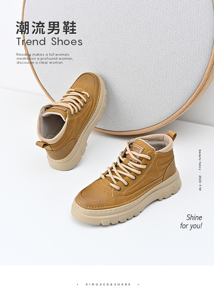 经典鲨2024年冬季新款男士加绒潮酷工装短靴棉鞋KF11-D55031