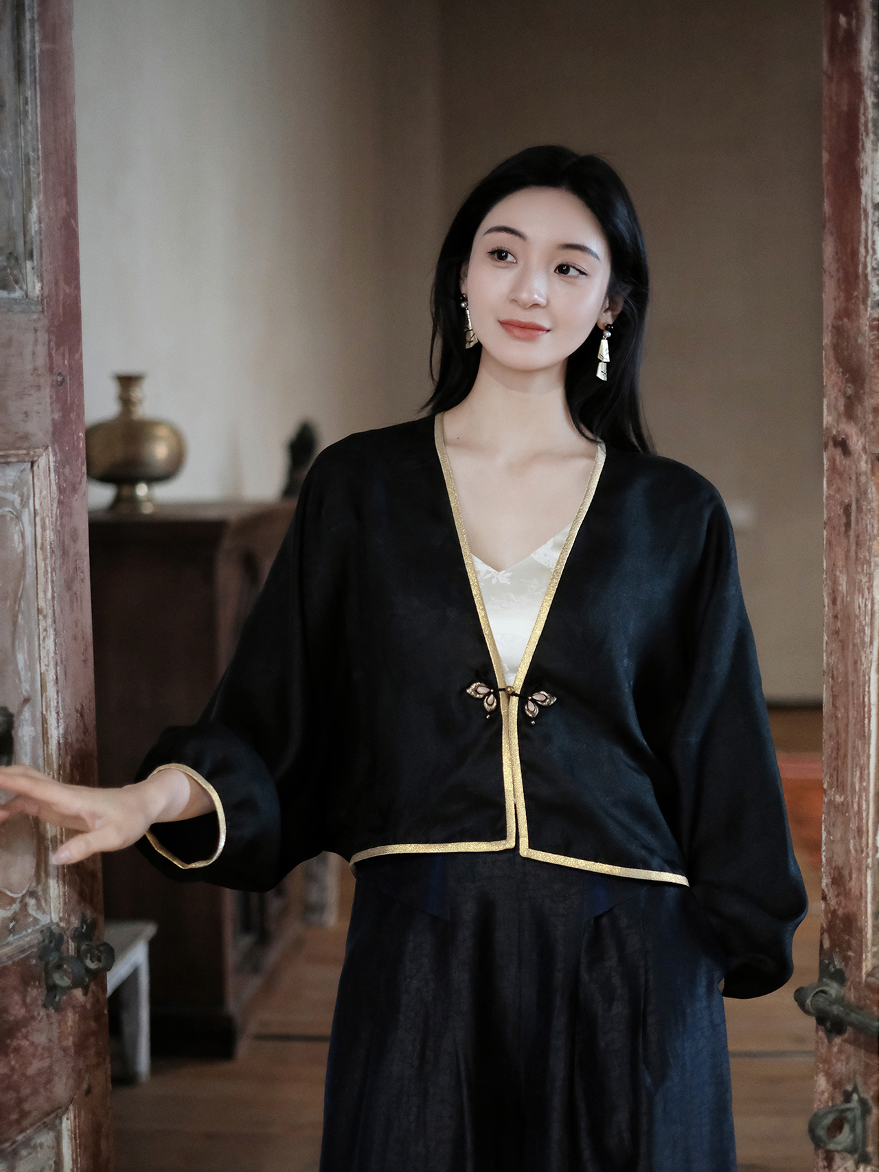 盛唐婧 |新中式真丝丝绒上衣
