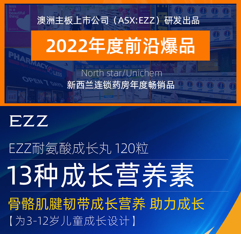 【EZZ骨乐咀嚼片/赖氨酸成长丸】儿童青少年学生成长发育,专为儿童长高而研发,三效合一激发身高潜能,澳洲TGA认证增高补充剂,酸奶口味,小孩子喜欢的味道