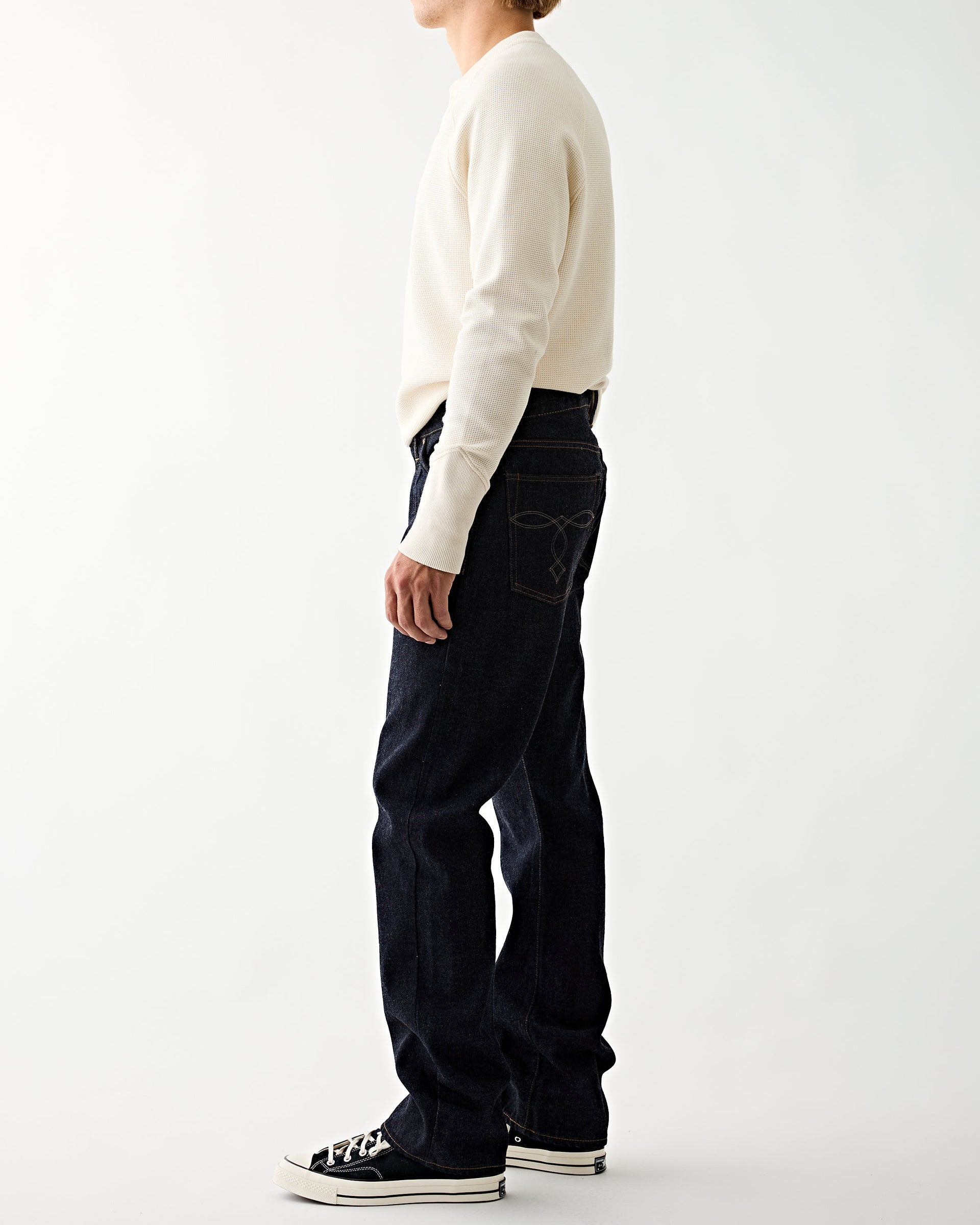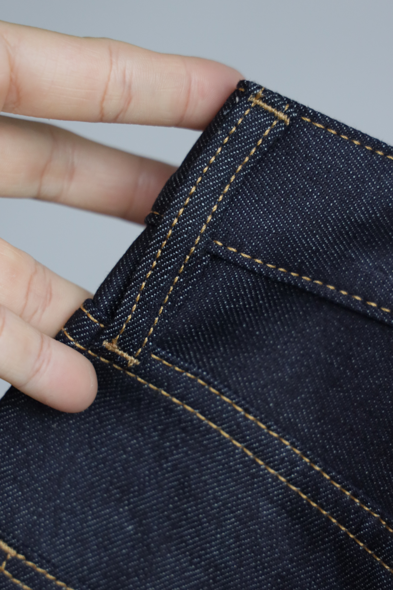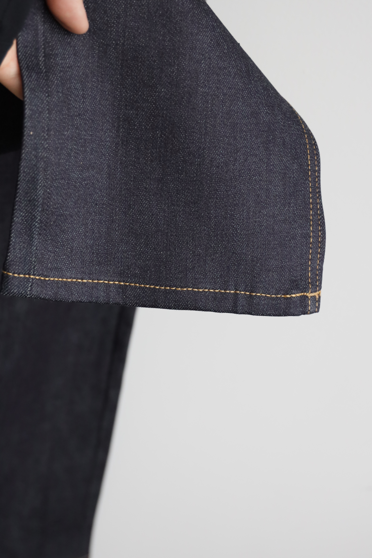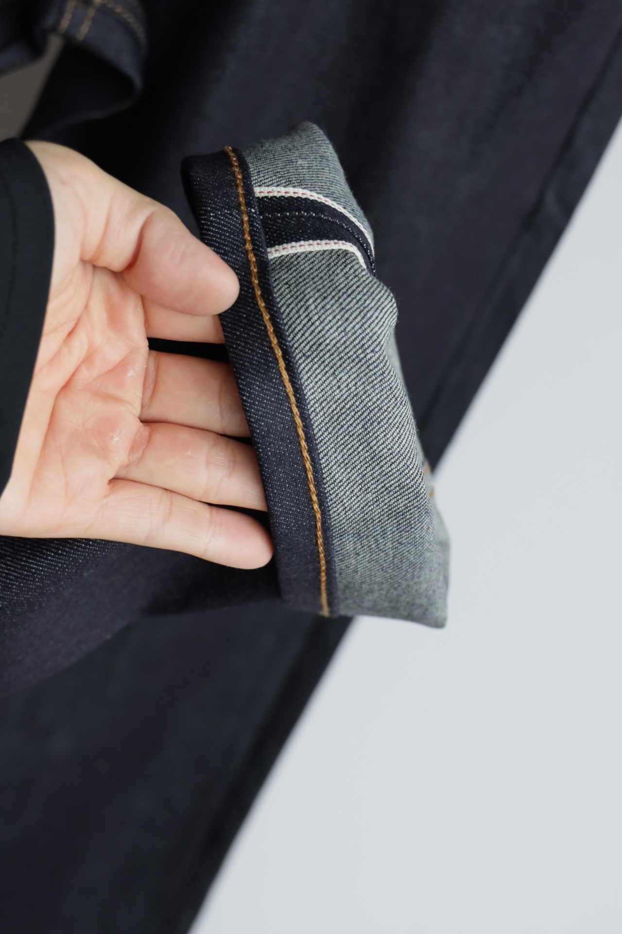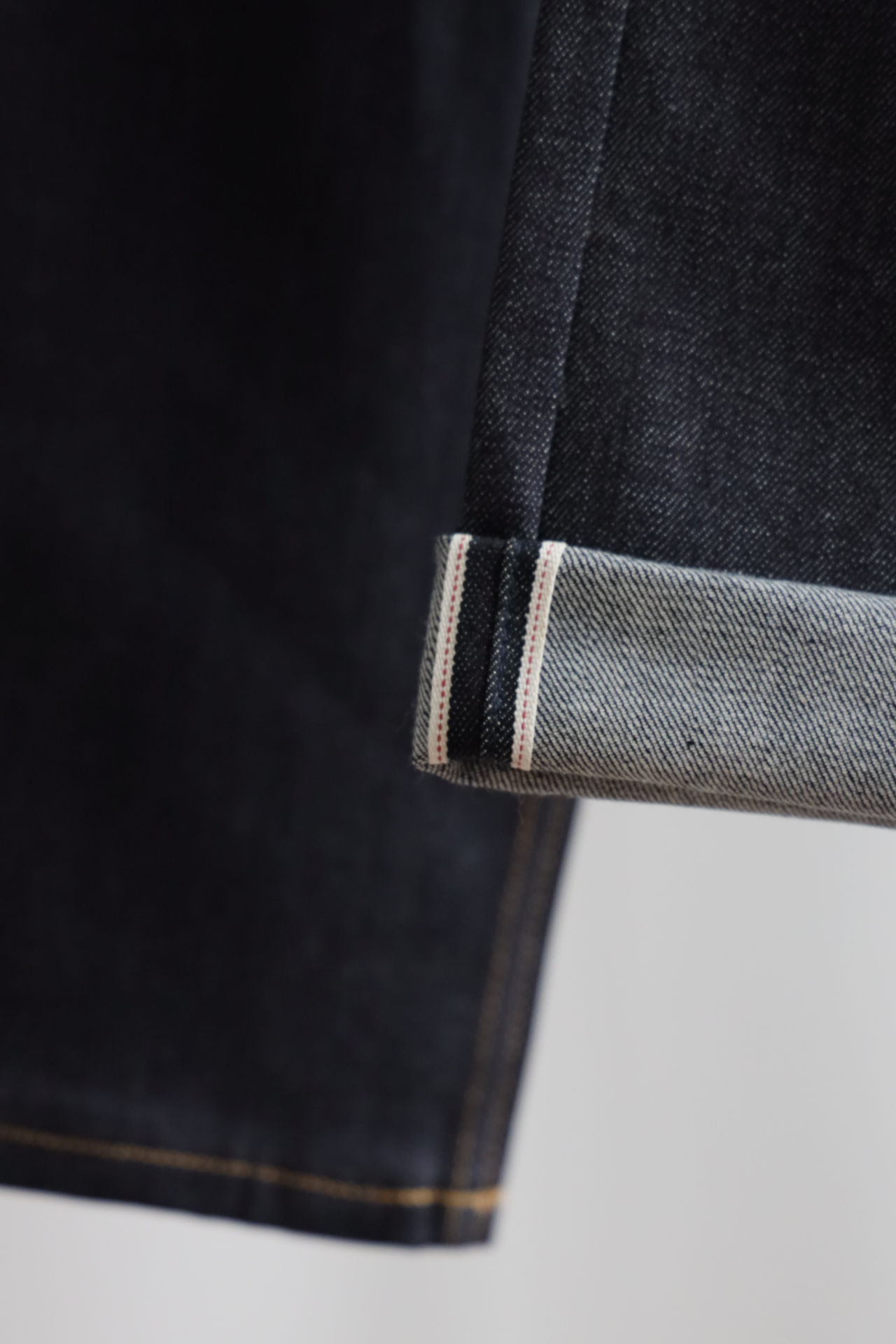 重磅丹宁肌理紧实挺括,赤耳包边锁边精致,久穿养出专属落色纹理