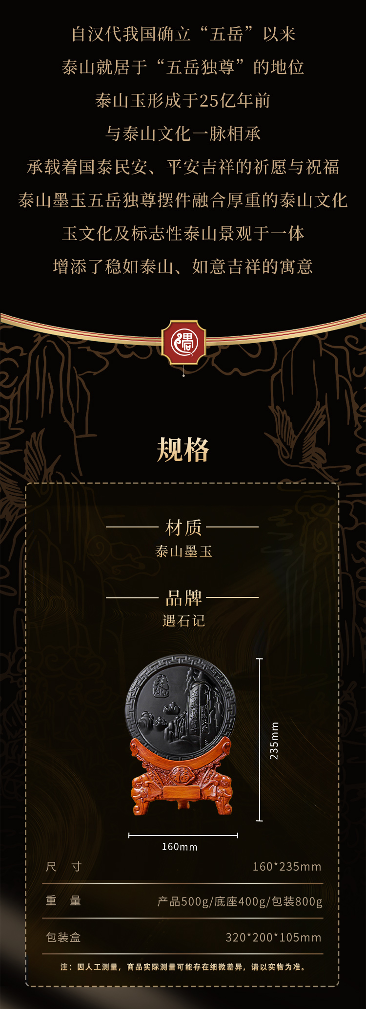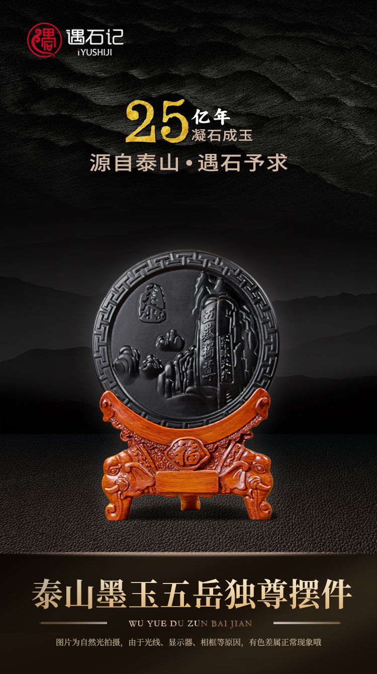 遇石记【泰山墨玉】五岳独尊玉璧摆件保平安