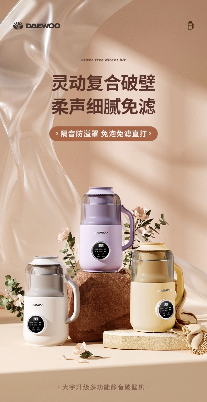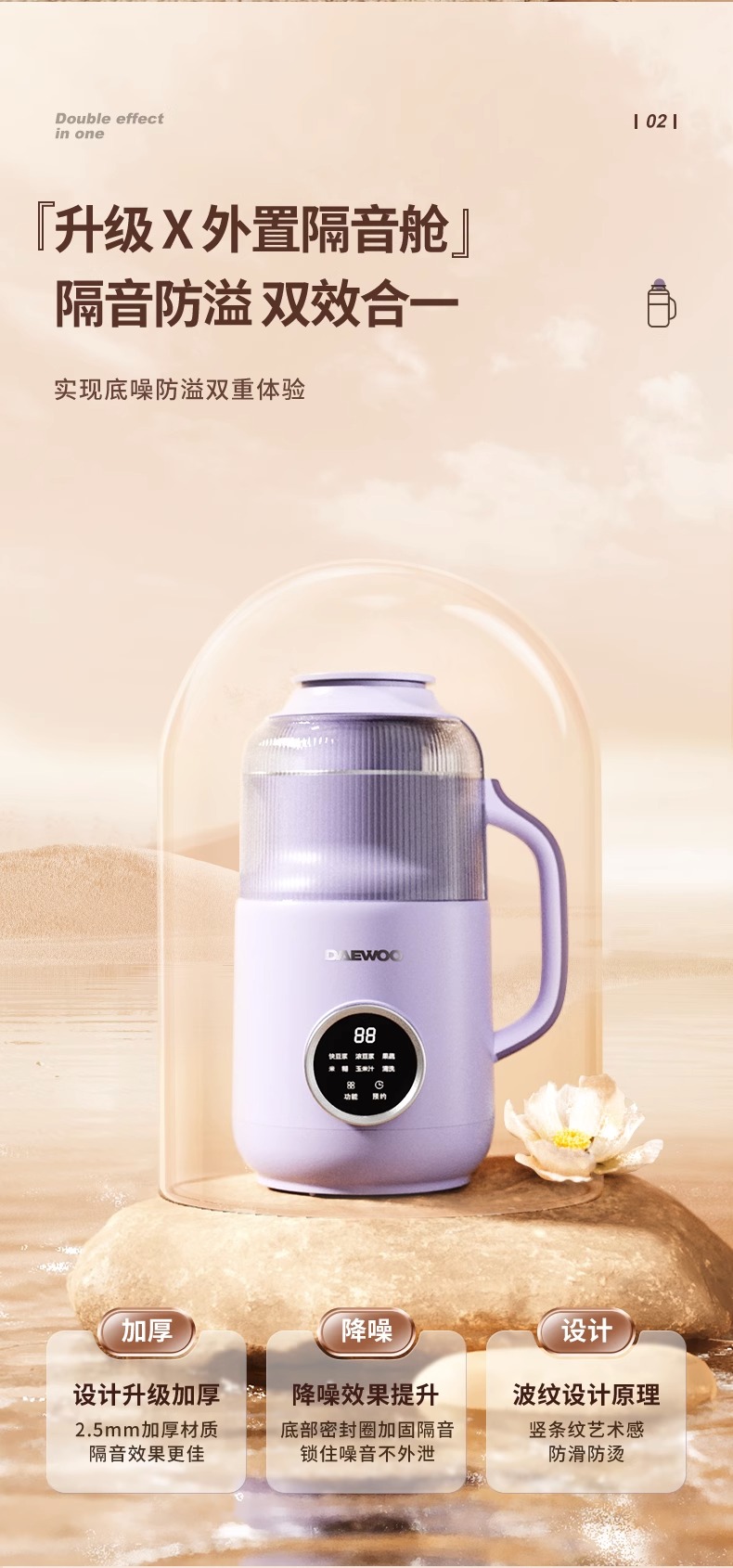 大宇云暮豆浆机新升级隔音仓全自动家用免煮免滤轻音直打米糊辅食破壁