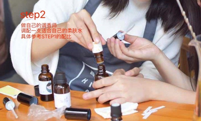 蒸馏水——精油——白醋或苹果醋或乳化剂,轻轻摇晃,全部溶解后,就成为一瓶柔肤水。