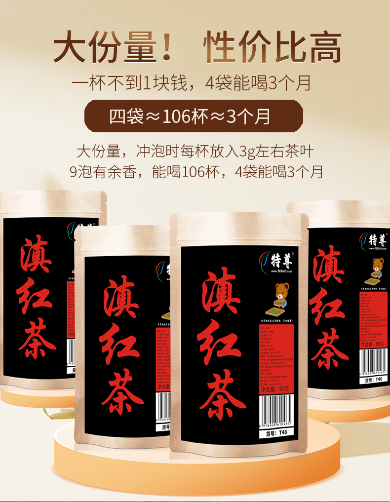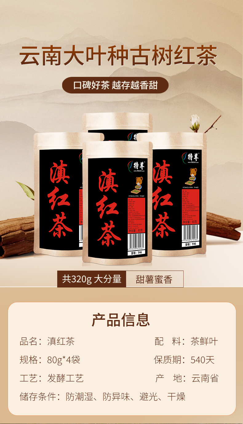 特尊滇红茶 云南大叶种古树红茶共320g