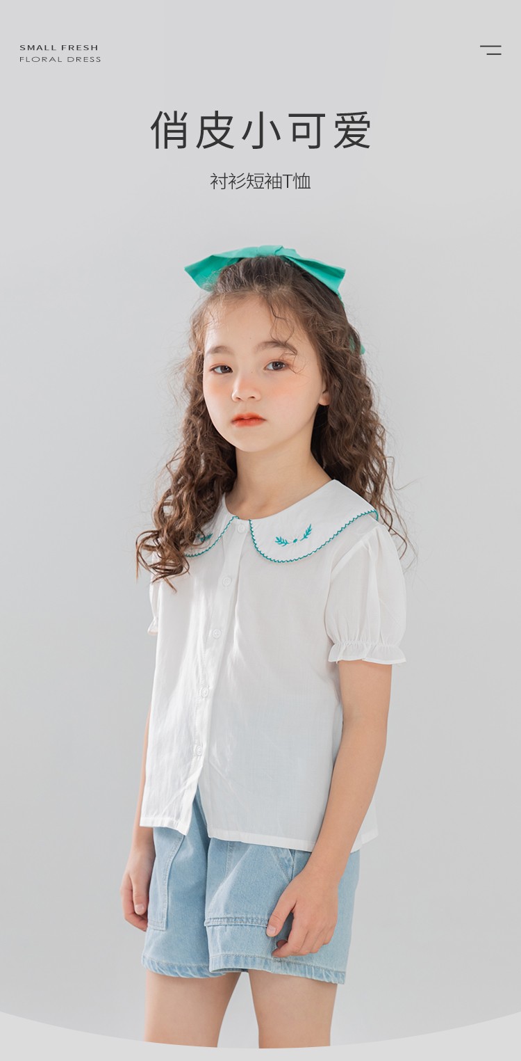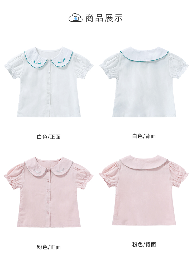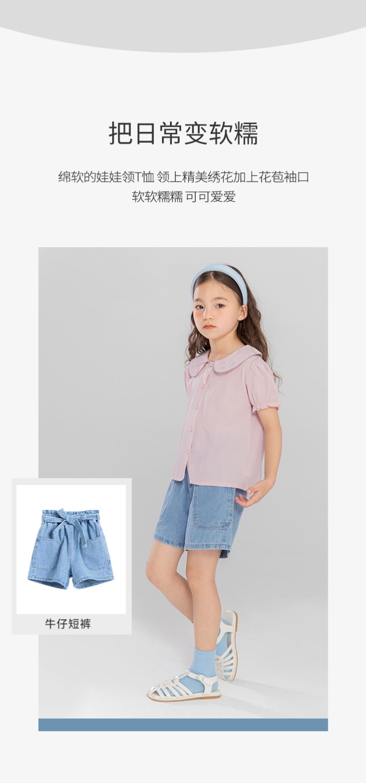 贝贝怡儿童短袖T恤女童夏季新品松紧袖口宝宝外出衣服上衣柔软透气