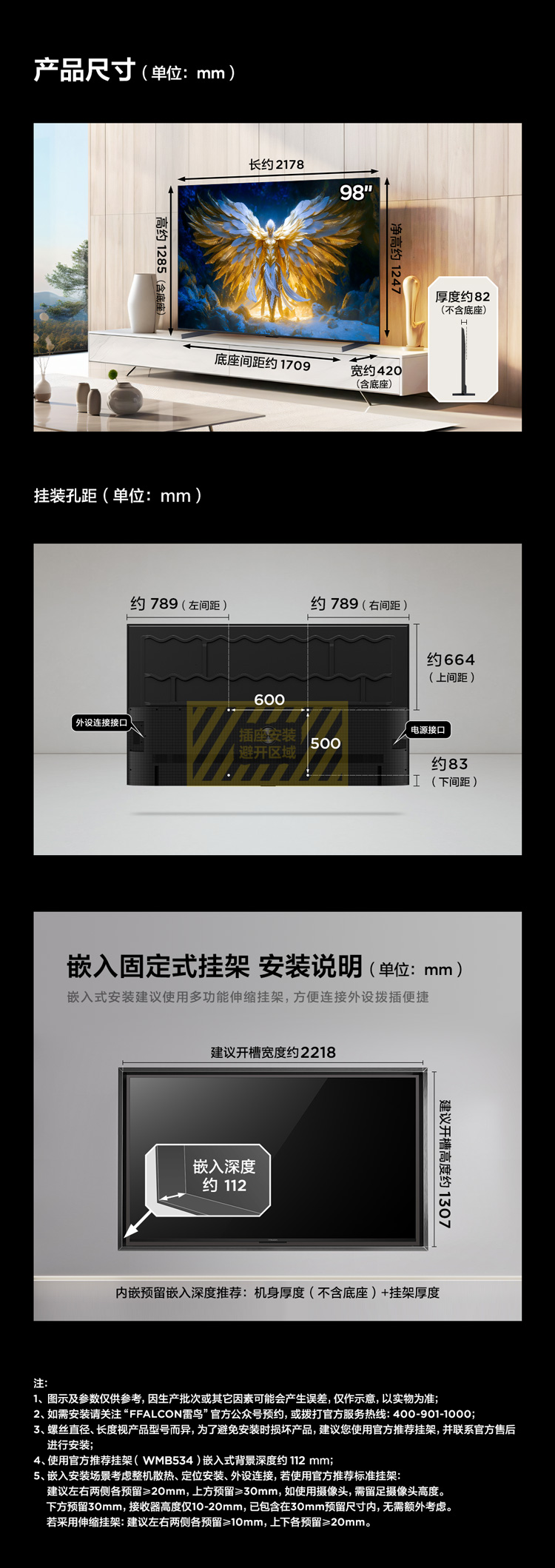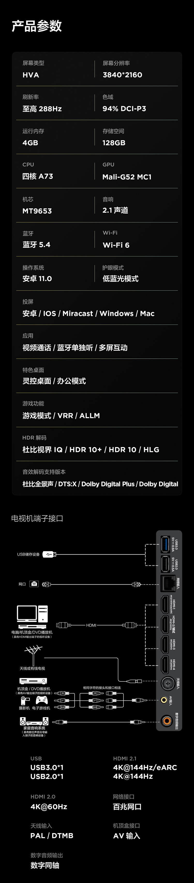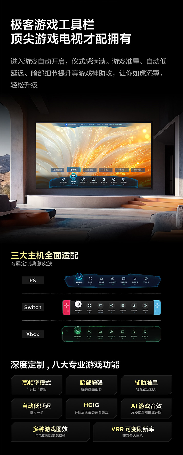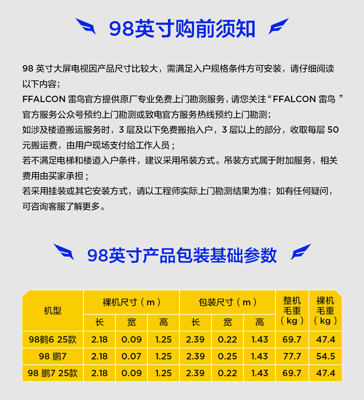 【FFALCON雷鸟】98鹏7 Mini 98英寸 HVA MiniLED高刷高亮游戏电视 98S385C Pro