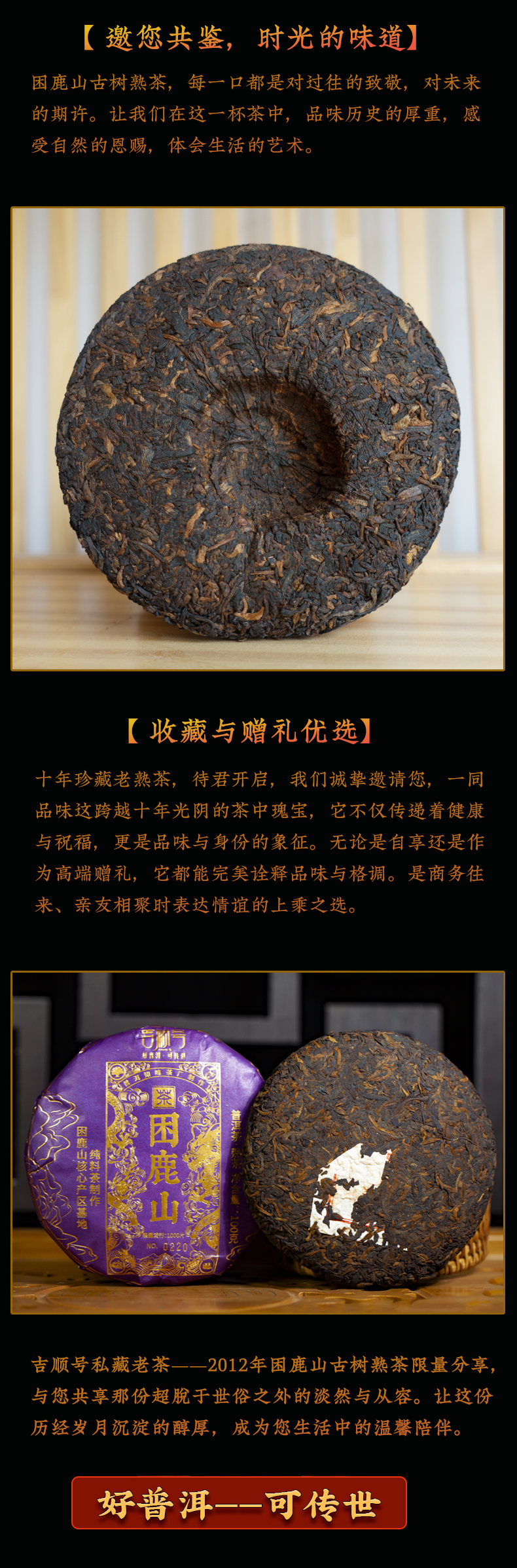 吉顺号2012年困鹿山古树普洱熟茶饼100克