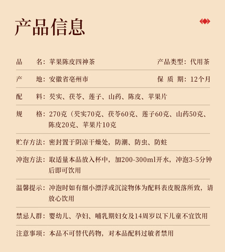 福东海 四神汤料组合270克【新升级 添加苹果片】莲子山药芡实茯苓陈皮儿童四神汤茶水四君子汤