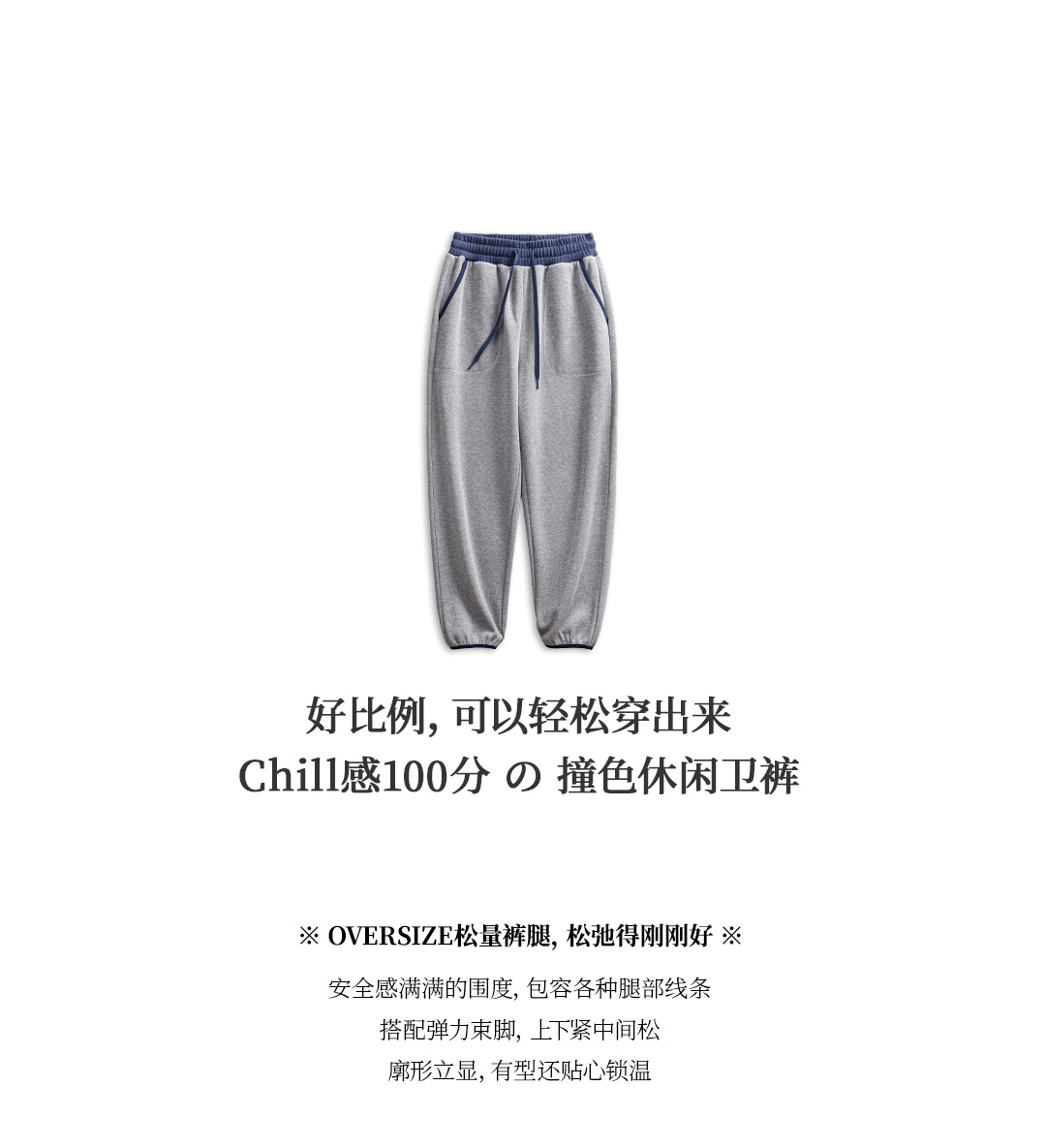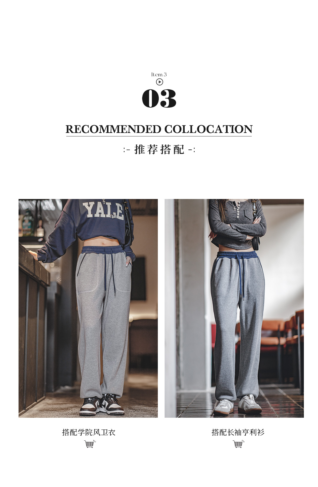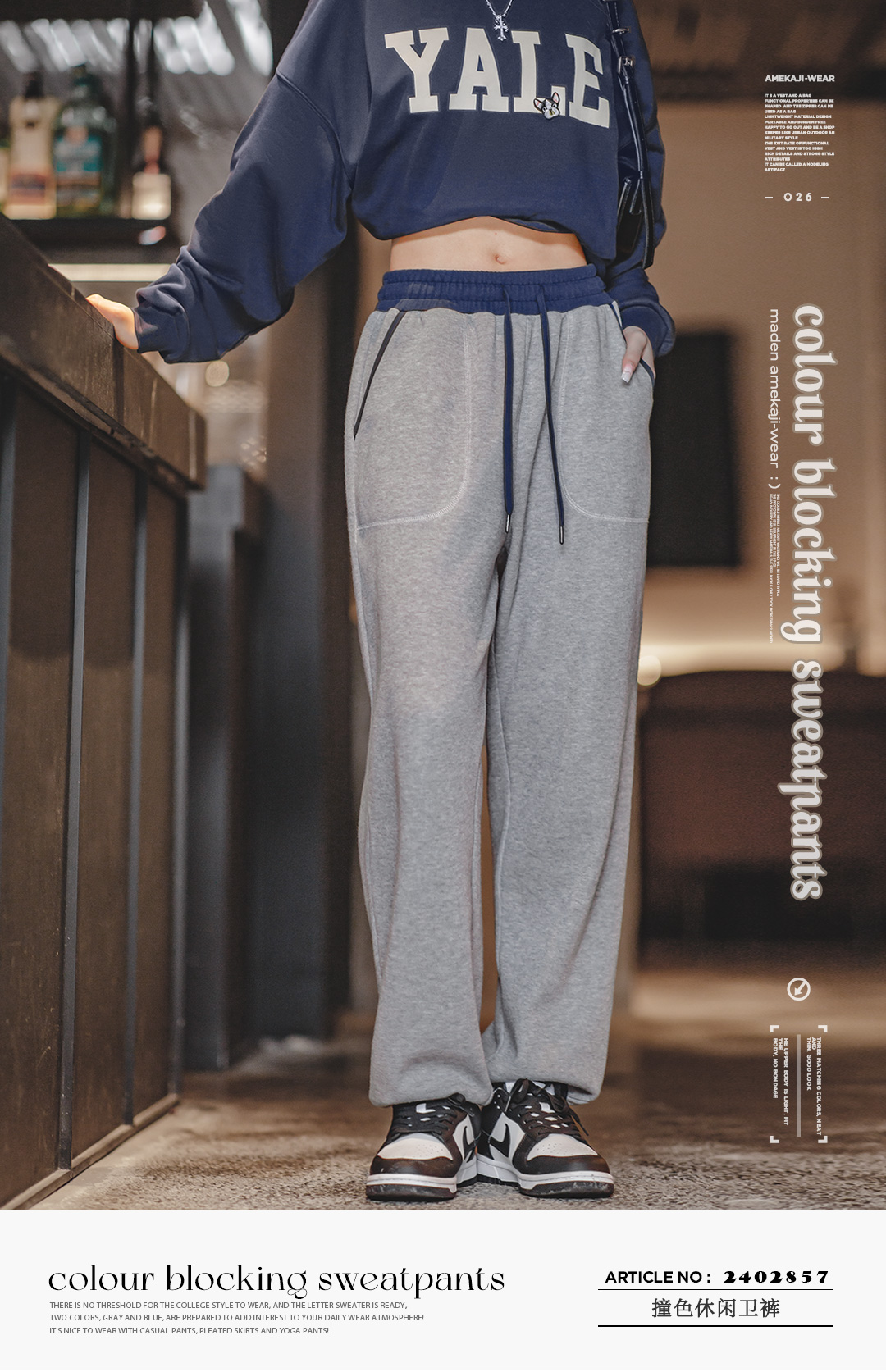 马登女装美式束脚灰色卫裤撞色显瘦宽松腰绳运动裤直筒长裤春季
