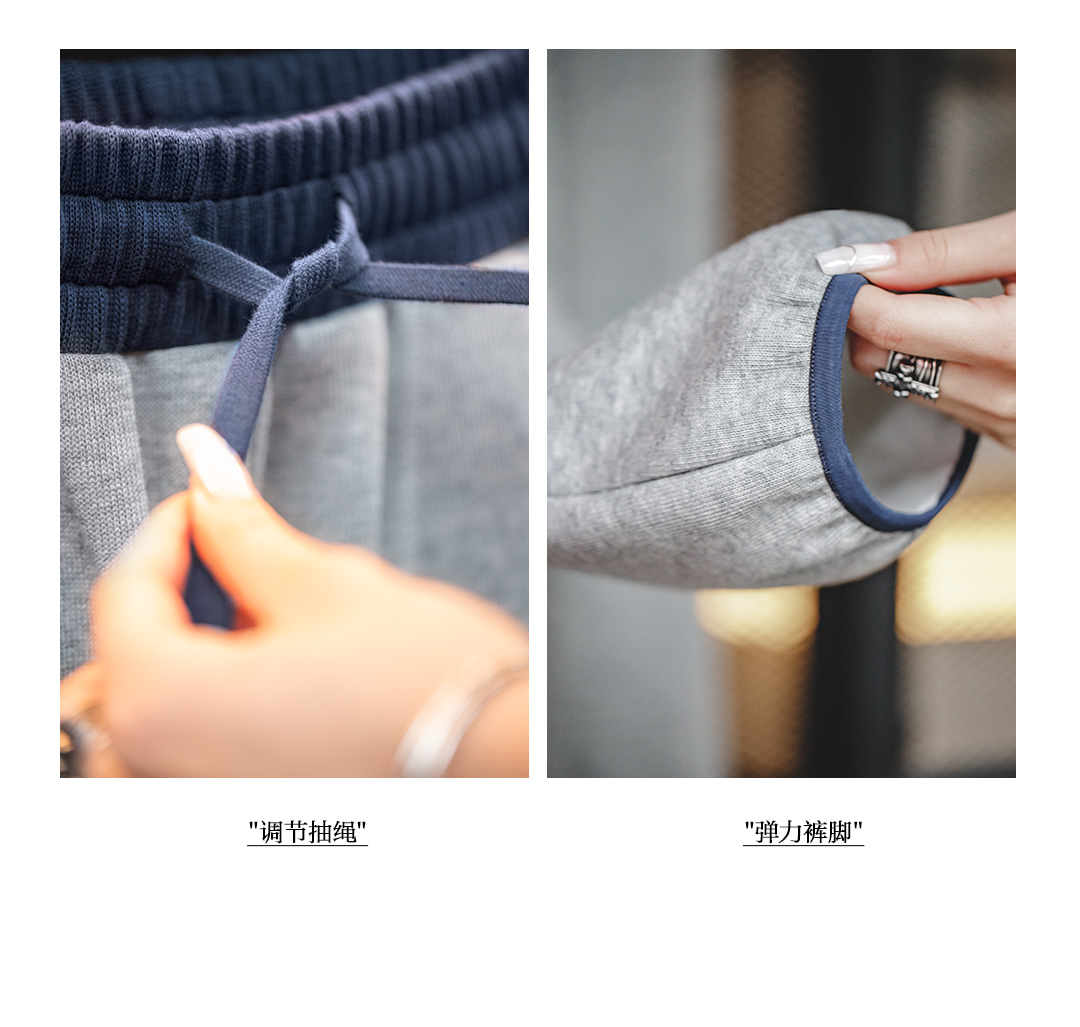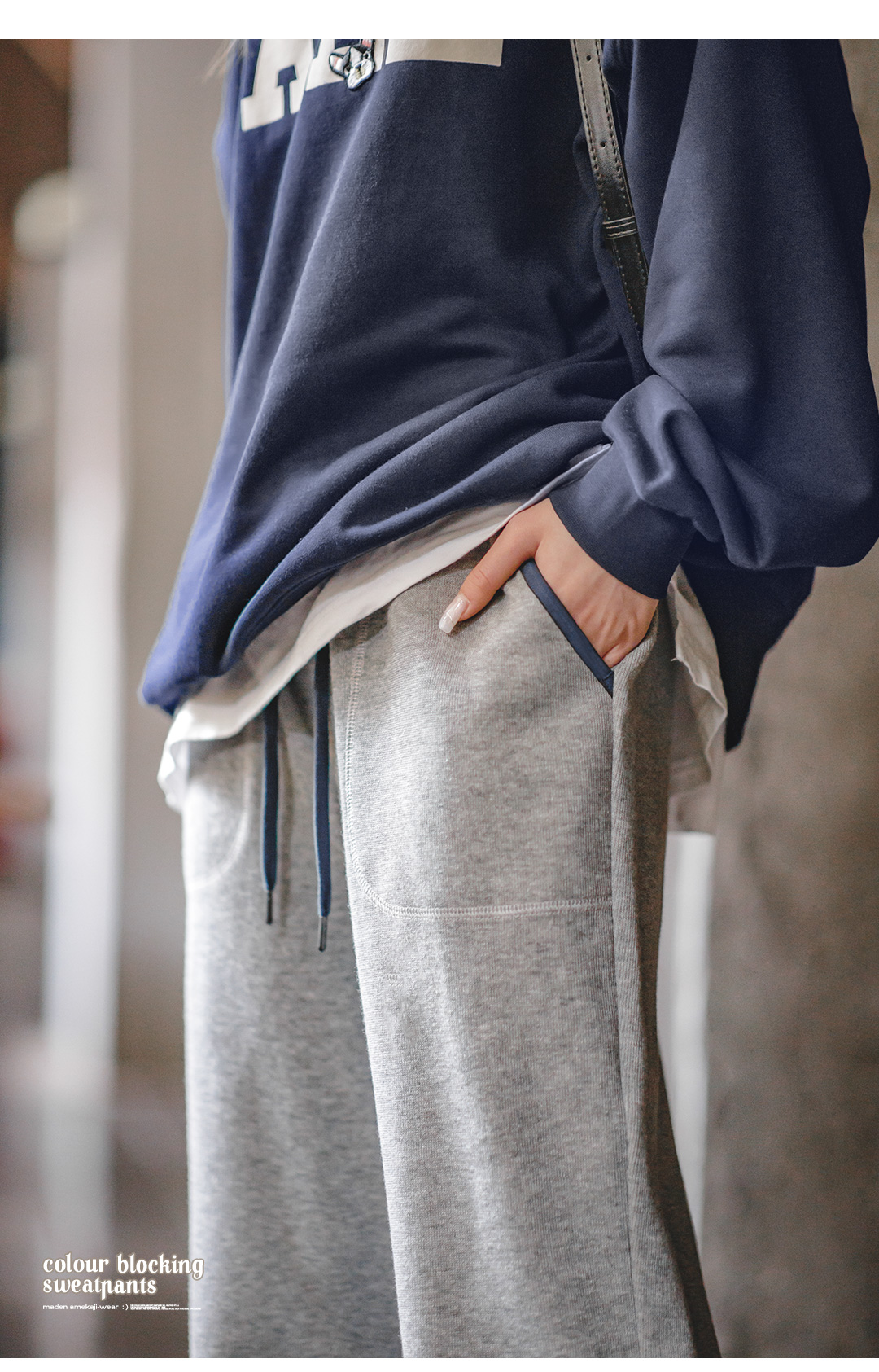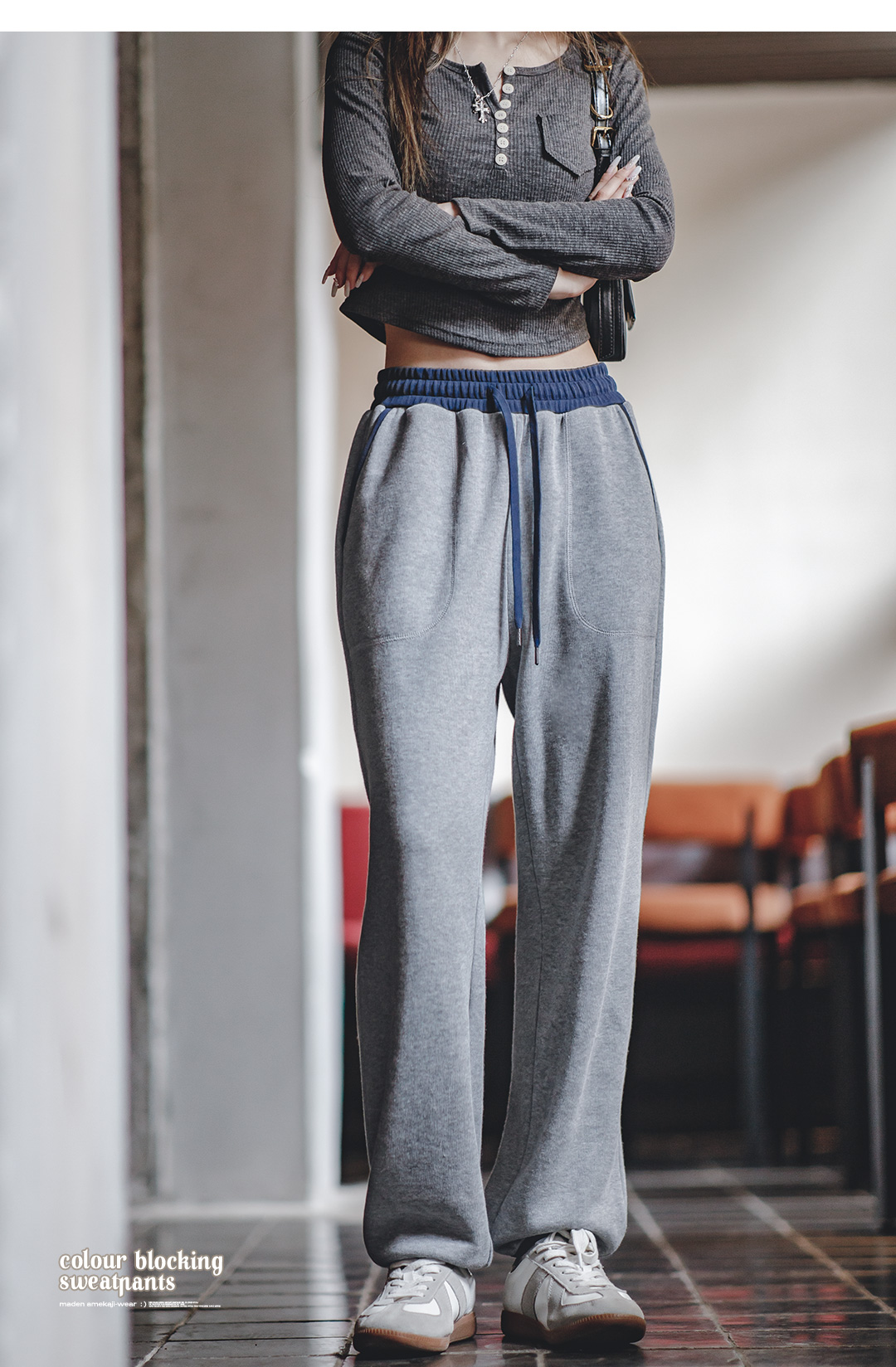马登女装美式束脚灰色卫裤撞色显瘦宽松腰绳运动裤直筒长裤春季