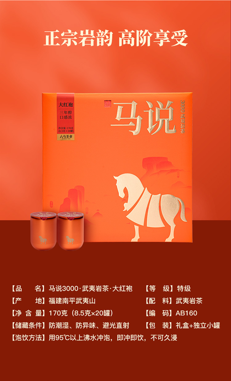 八马茶业 | 武夷岩茶特级马说大红袍肉桂乌龙茶送礼高端茶送礼茶礼礼盒装170g