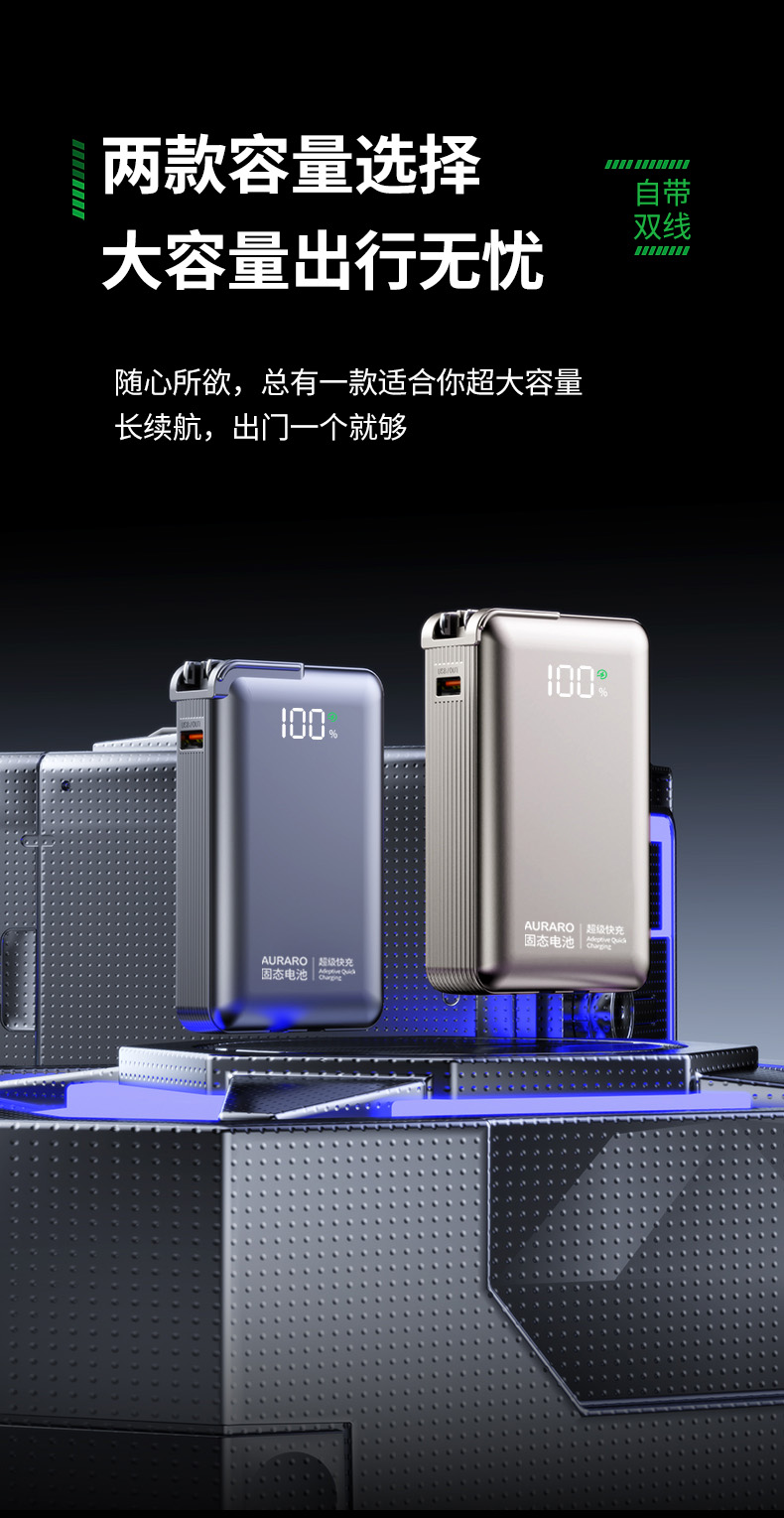 热卖!硬核黑科技!瑞士AURARO 三合一固态充电宝 搭载固态电芯 3C认证可上飞机高铁 自带AC插脚 小巧便携