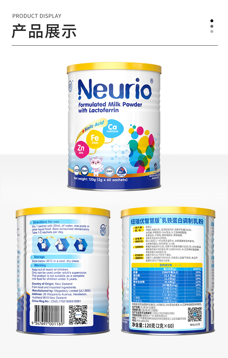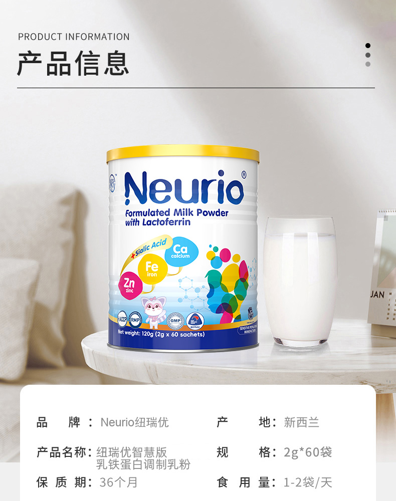 【一般贸易进口】特价清仓!澳大利亚Neurio纽瑞优乳铁蛋白调制乳粉智慧版120g(有效期2026年5-8月)