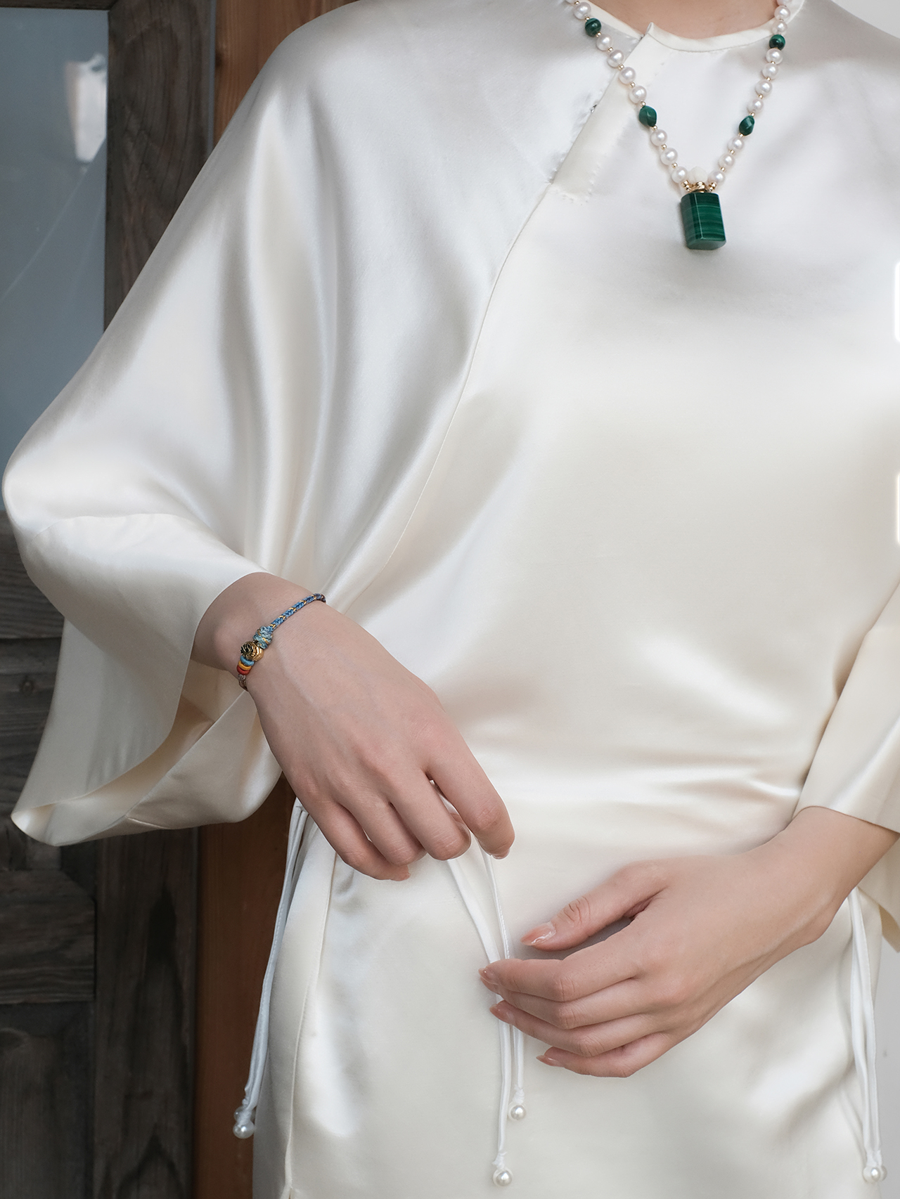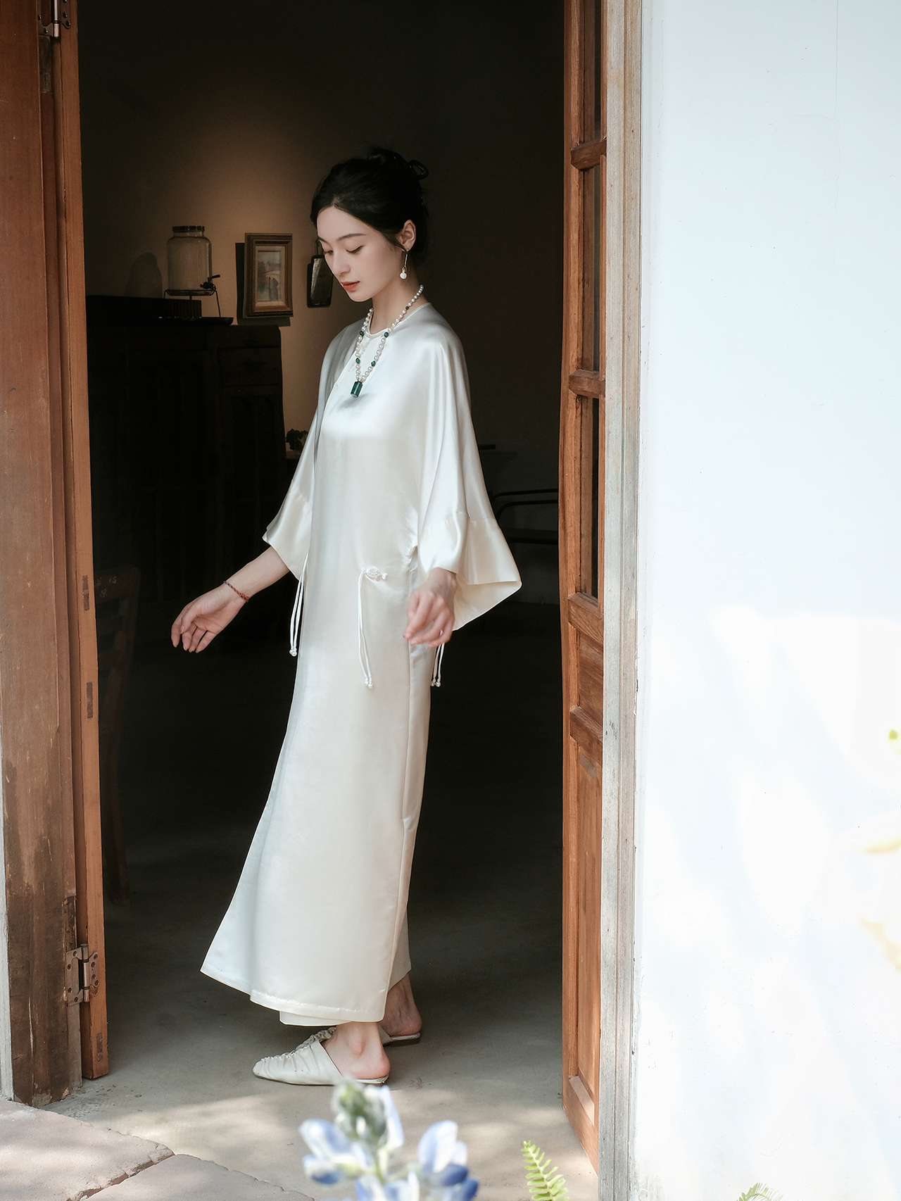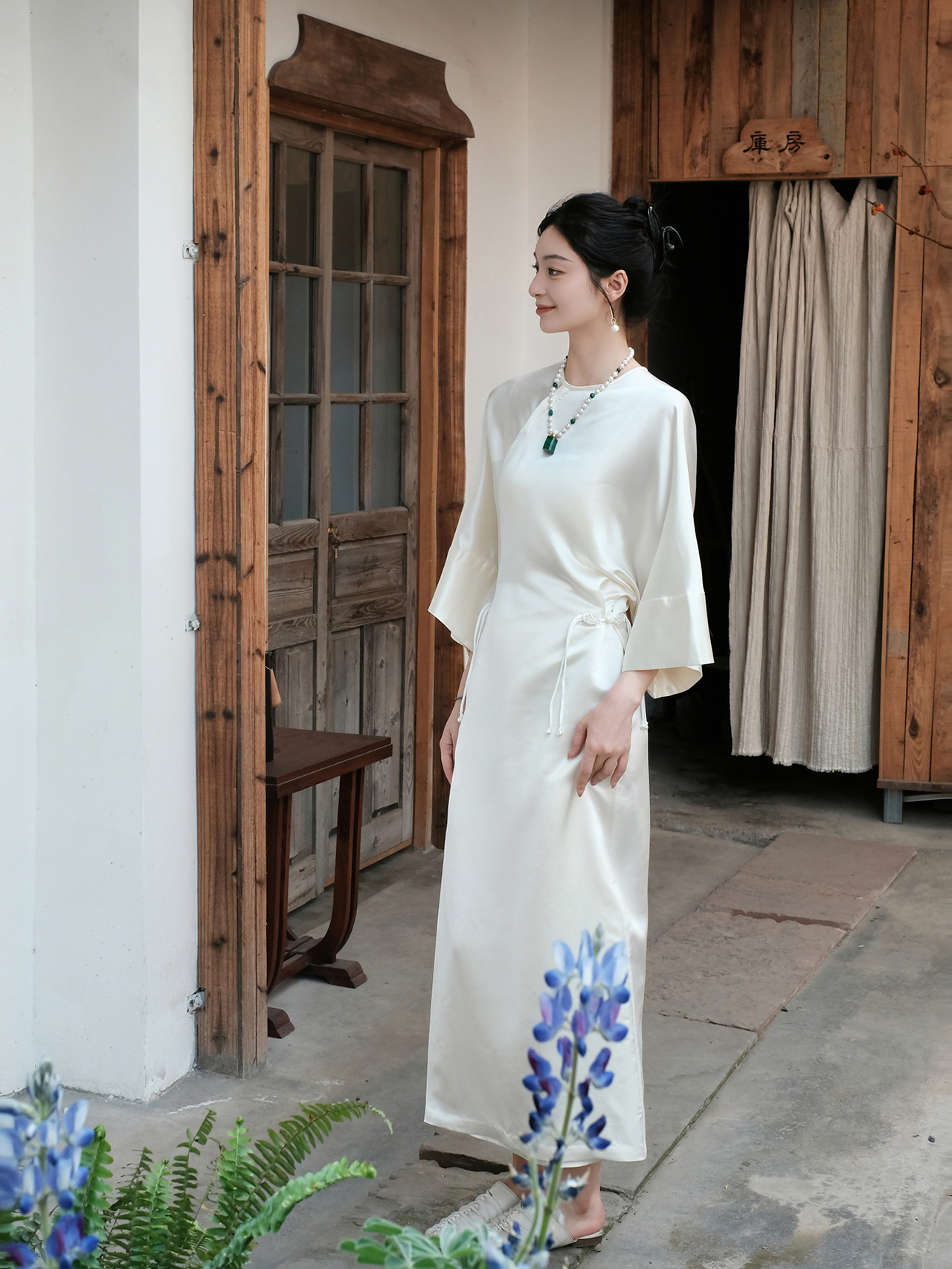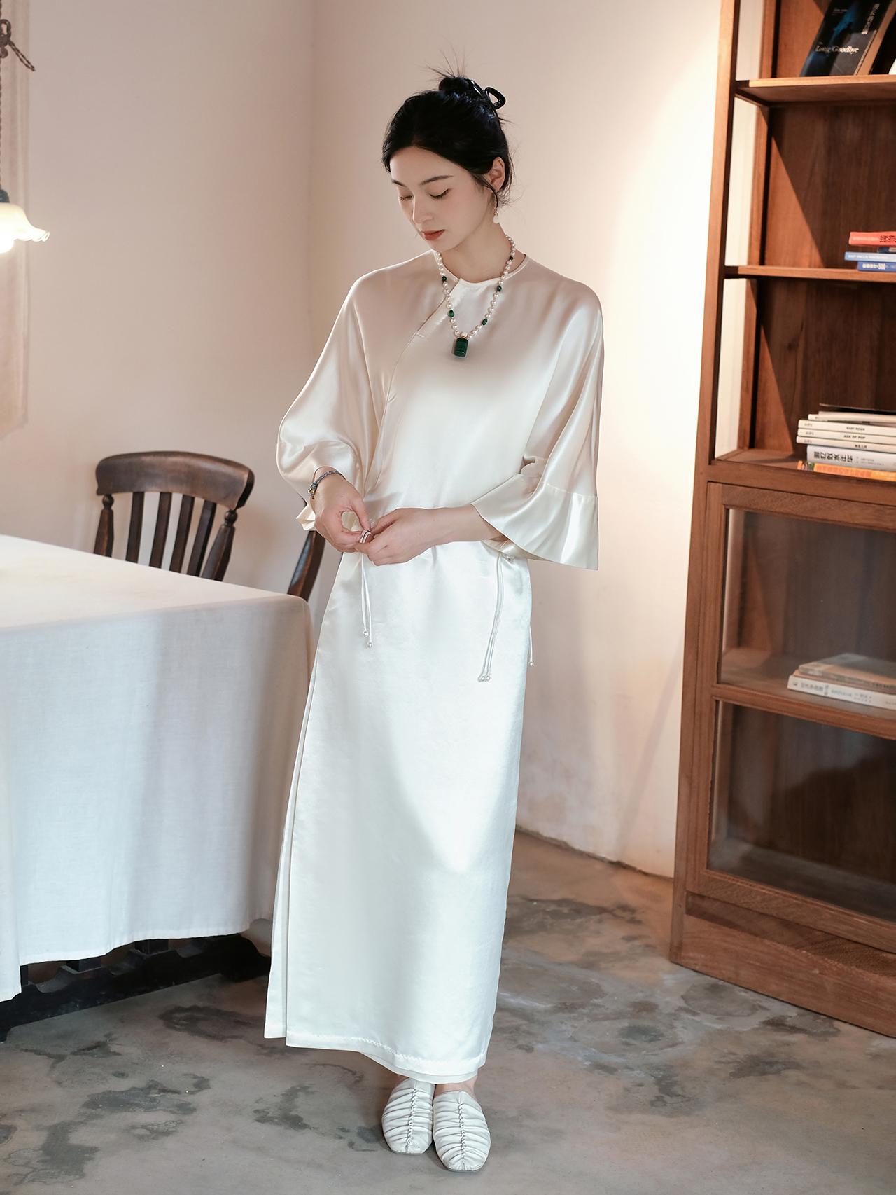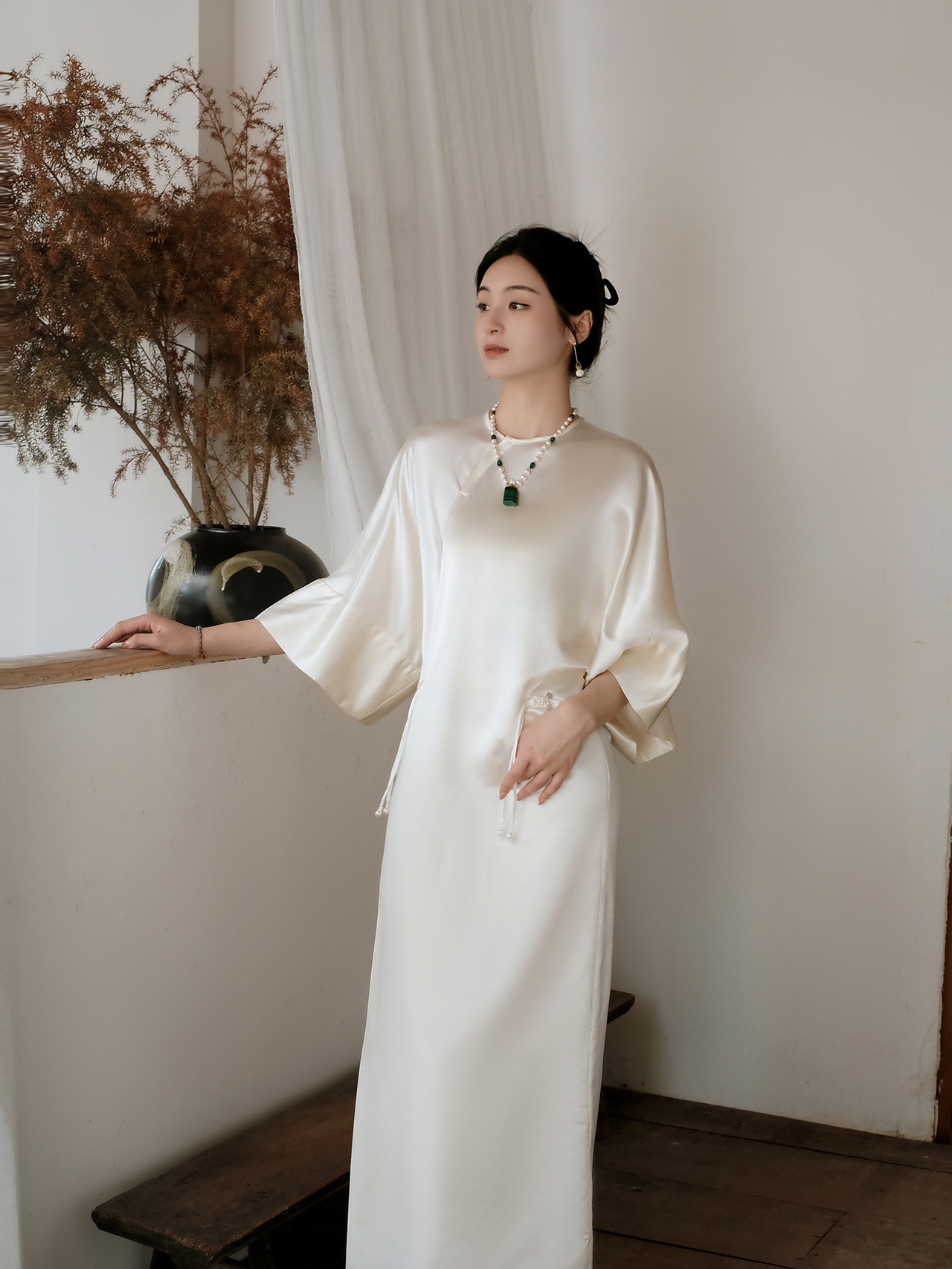 盛唐牡丹 | 丝毛新中式挽袖长裙