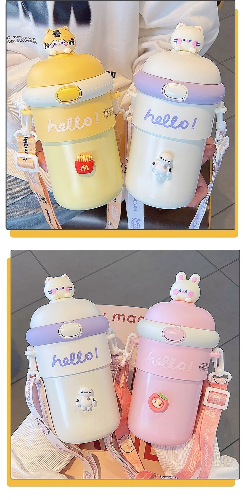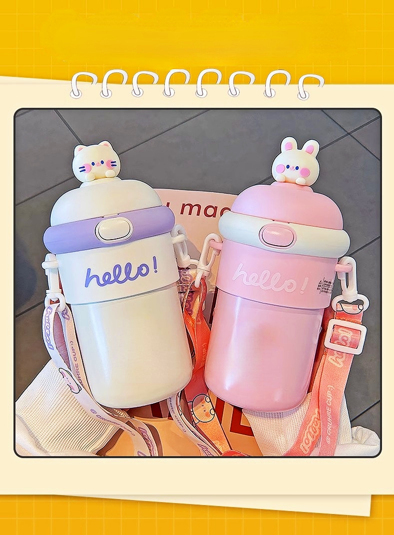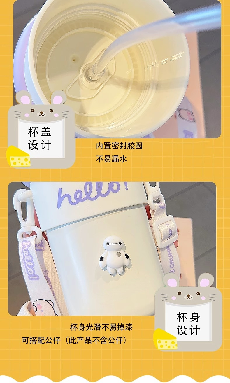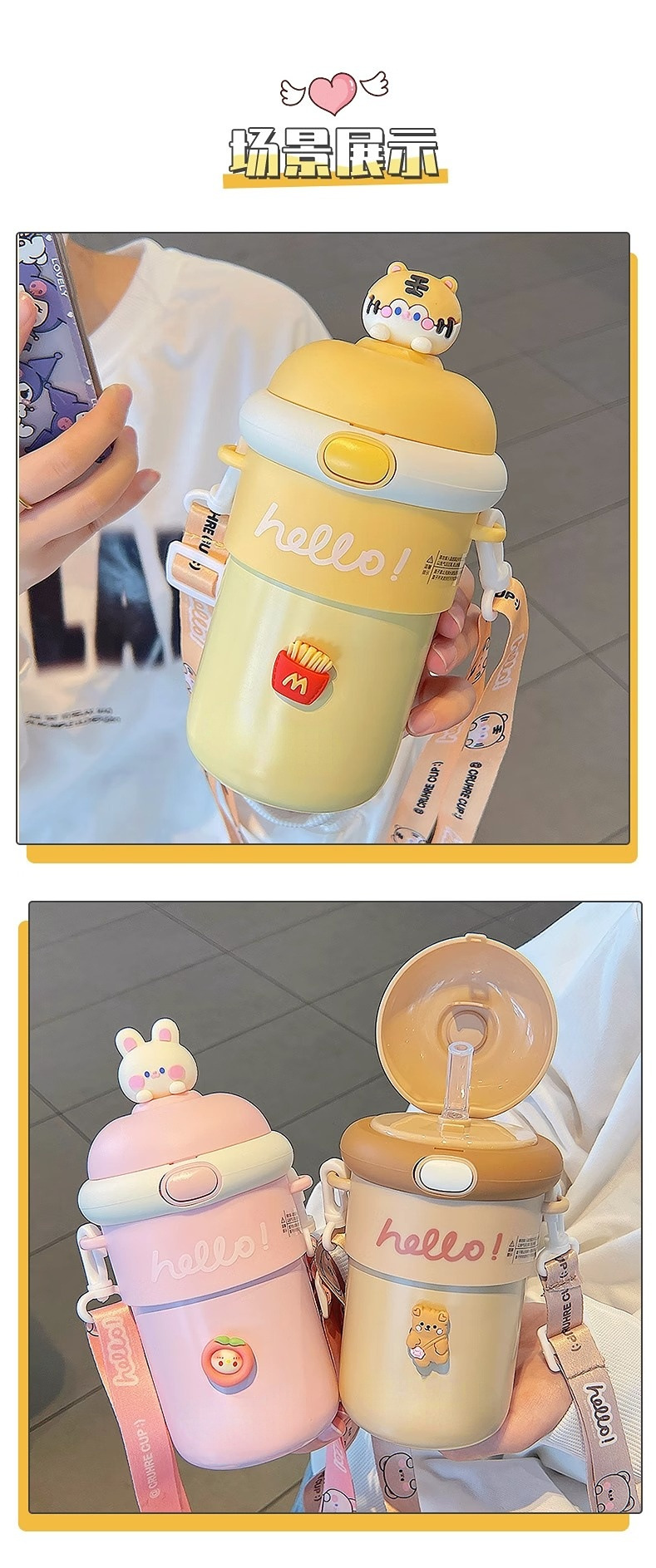 【下单送3D立体贴❗高颜值卡通背带水杯】女生大容量可爱吸管杯,内置密封胶圈,不易漏水多色可选,学生ins便携玻璃杯L