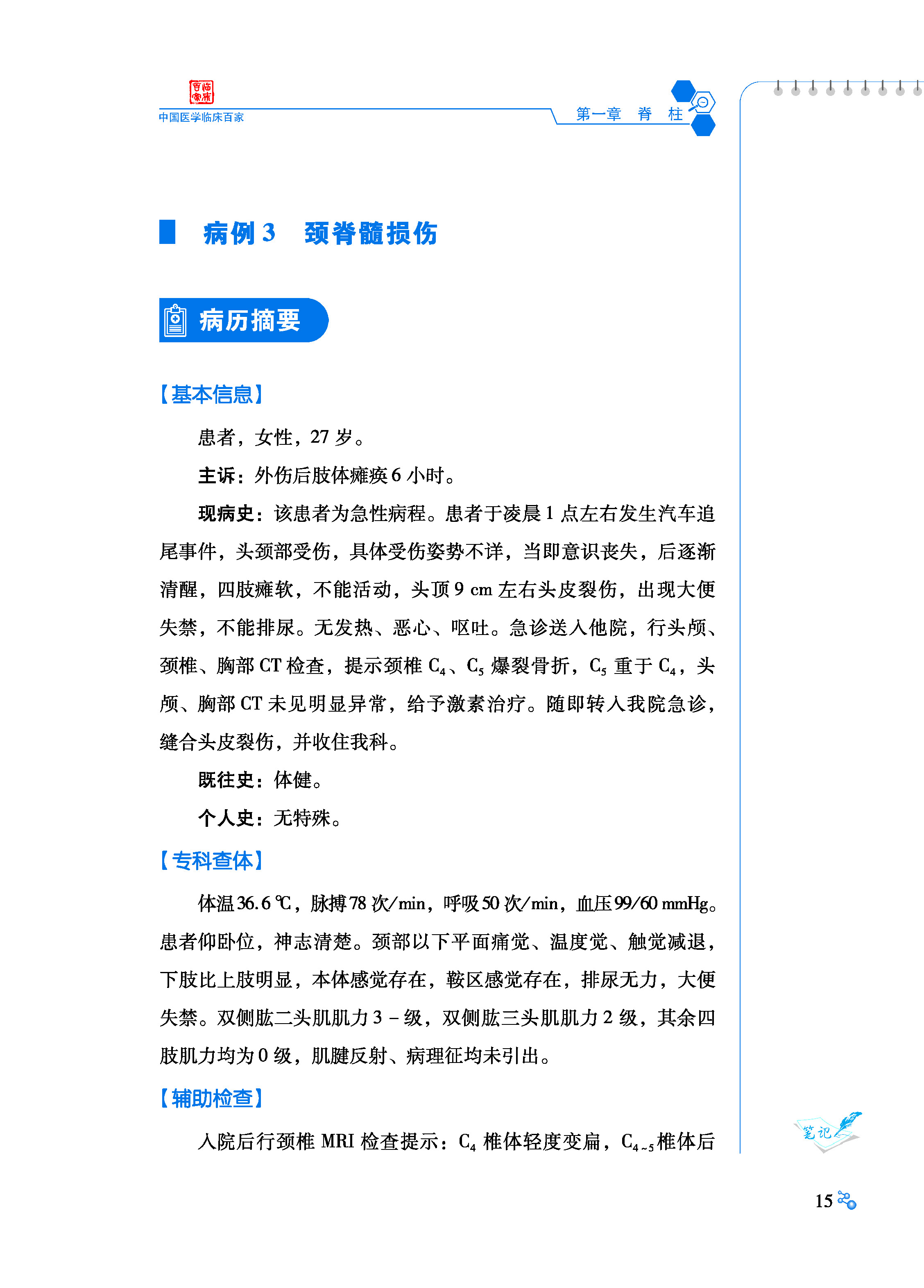 本书汇聚了骨科常见的颈椎疾病、腰椎疾病、髋膝关节置换及骨肿瘤的经典病例和复杂病例,特别是复杂的脊柱侧弯的畸形矫正、复杂的膝关节置换及骨盆恶性肿瘤的诊治。本书采用的病例,尽可能真实地还原临床情景,引导读者思考,糅合理论知识,清晰地展现临床诊疗思路,并通过专家点评,提炼病例的核心内容及指导意义。在编写过程中,我们尽量做到病历摘要精炼化,病例分析条理化,通过抽丝剥茧,展现疾病的诊疗思路,并不断拓展疾病相关知识;注重体现诊疗规范性和实用性;图文并茂,内容表达简明清晰,便于理解和记忆。希望本书能够给骨科同道们最大的启发和帮助。