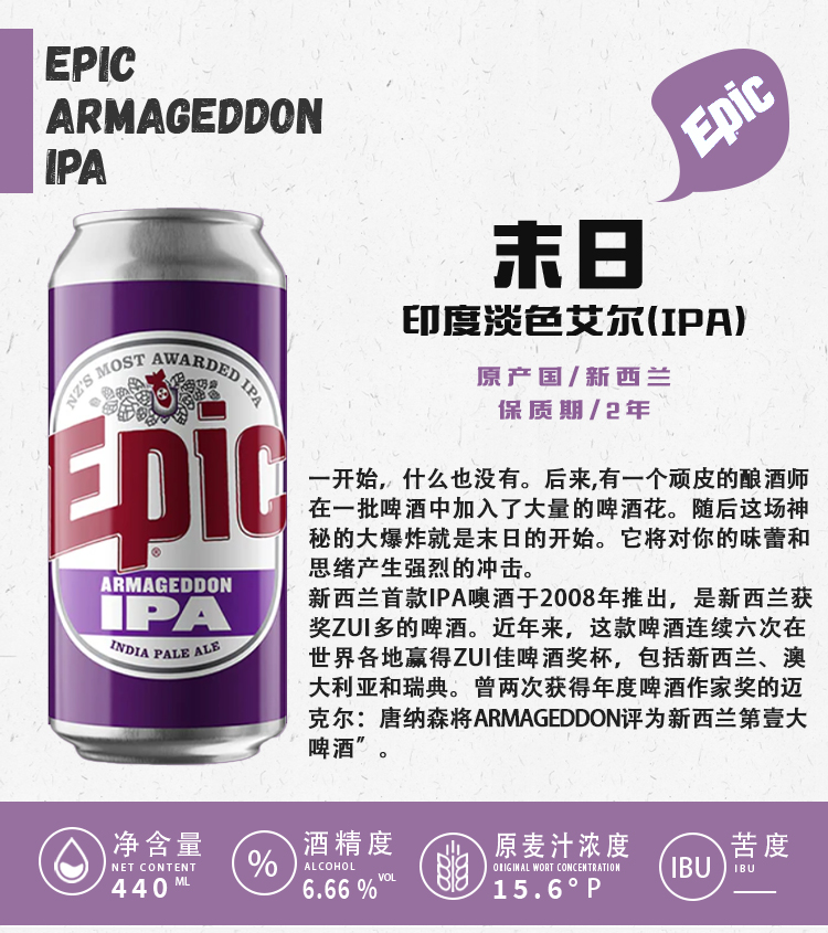 【冷库储藏】新西兰神话末日印度淡色艾尔啤酒 6.66%vol 440ml