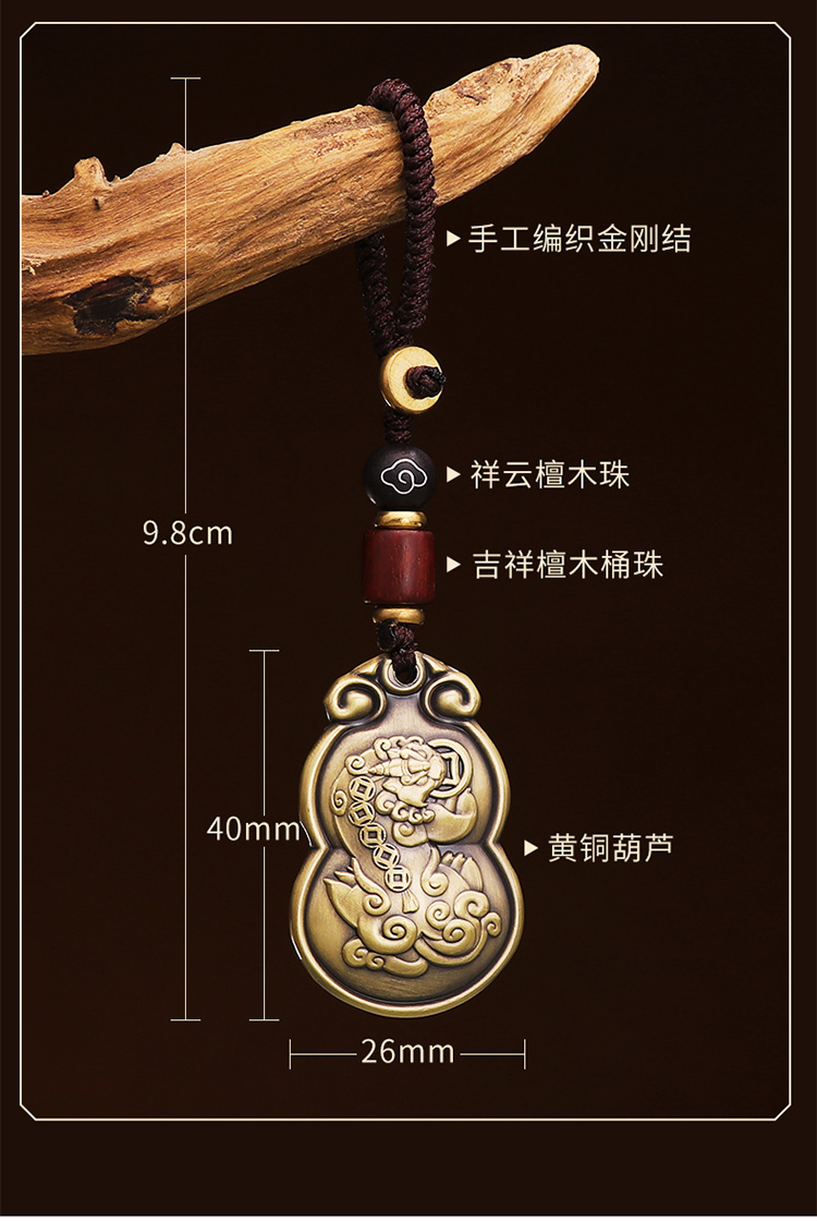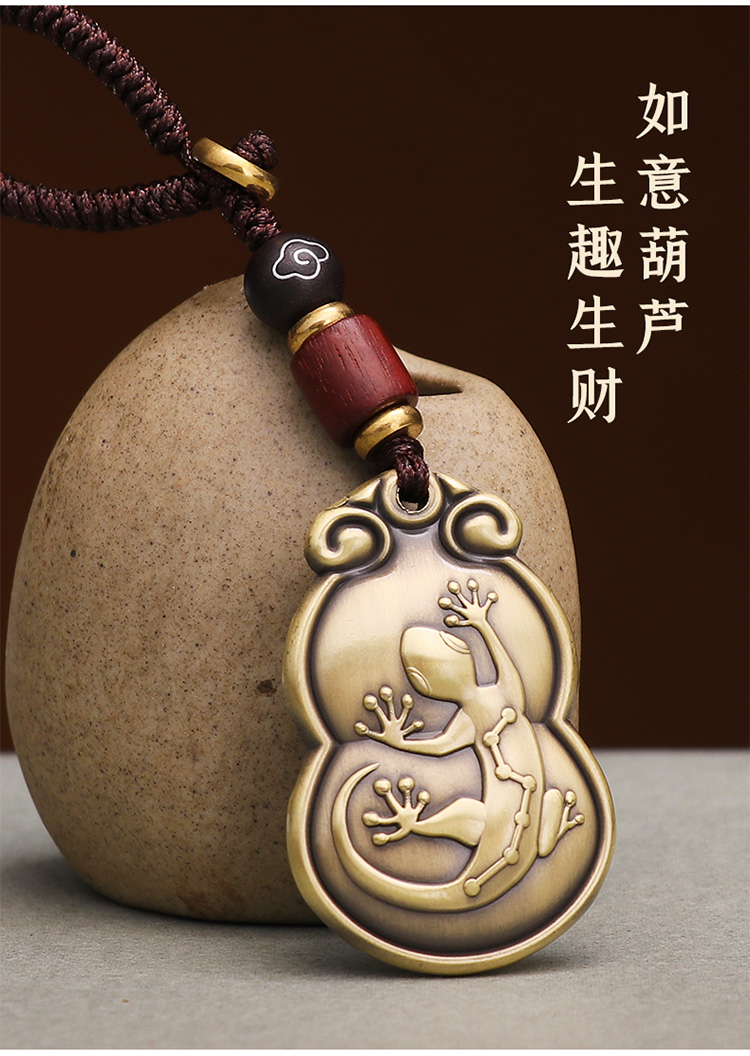 【黄铜貔貅壁虎葫芦挂饰】