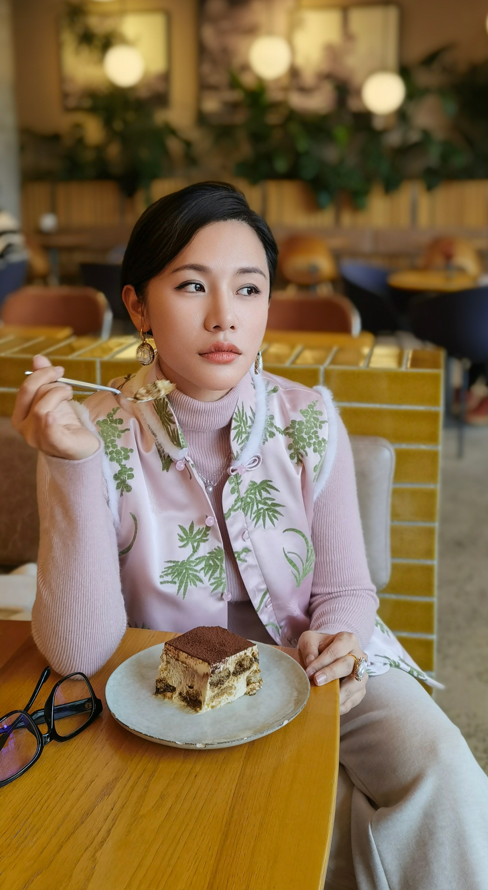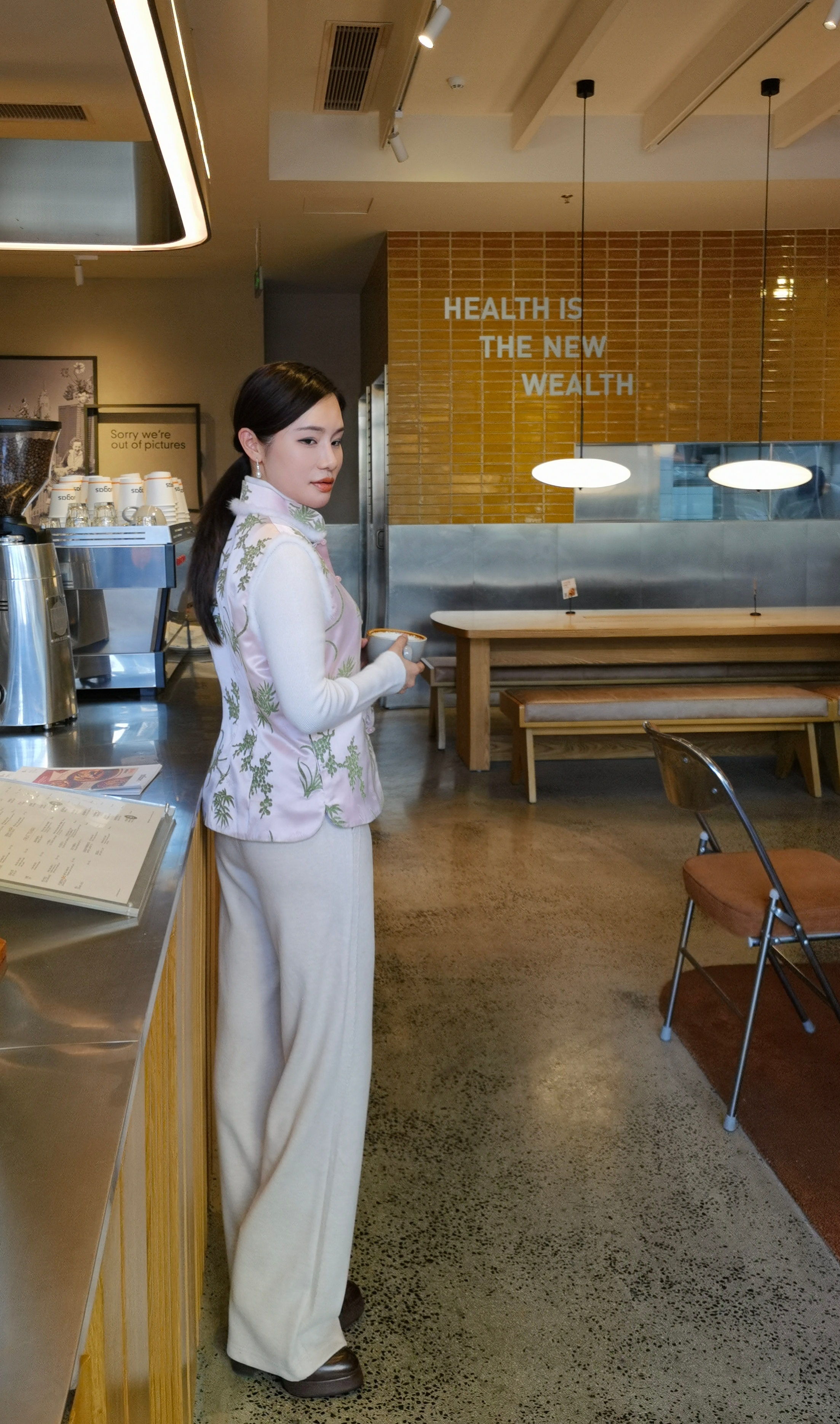 👉前开襟,领口点缀一颗手工双耳盘扣,恰到好处的中式氛围。