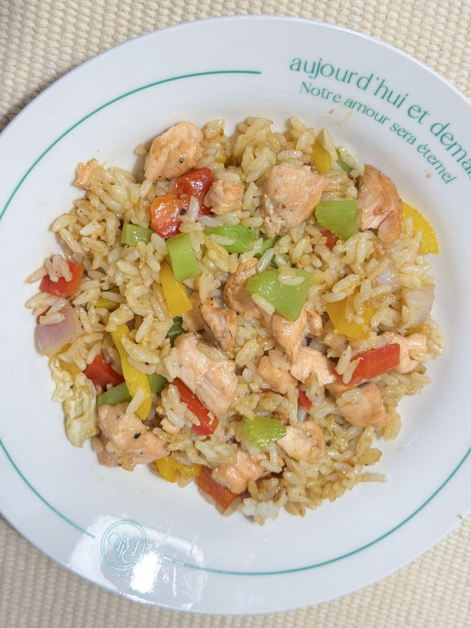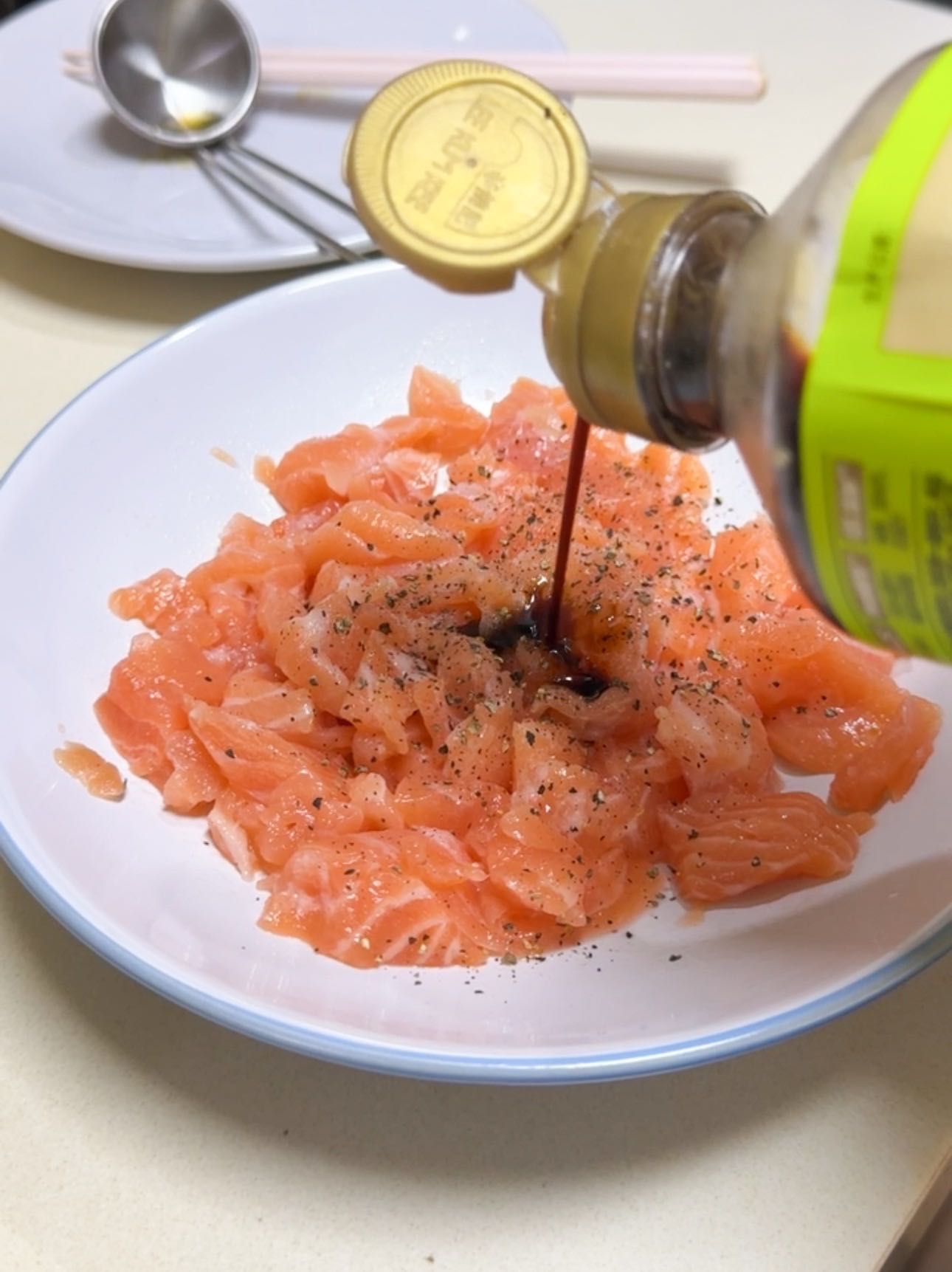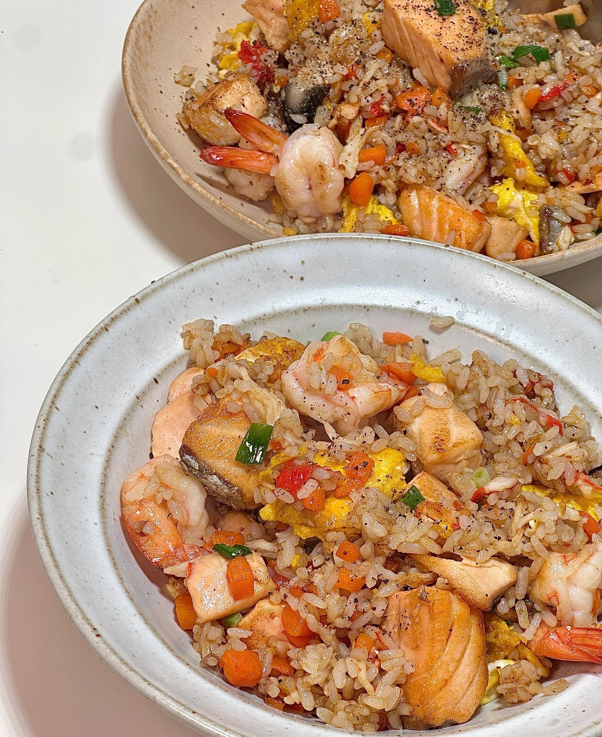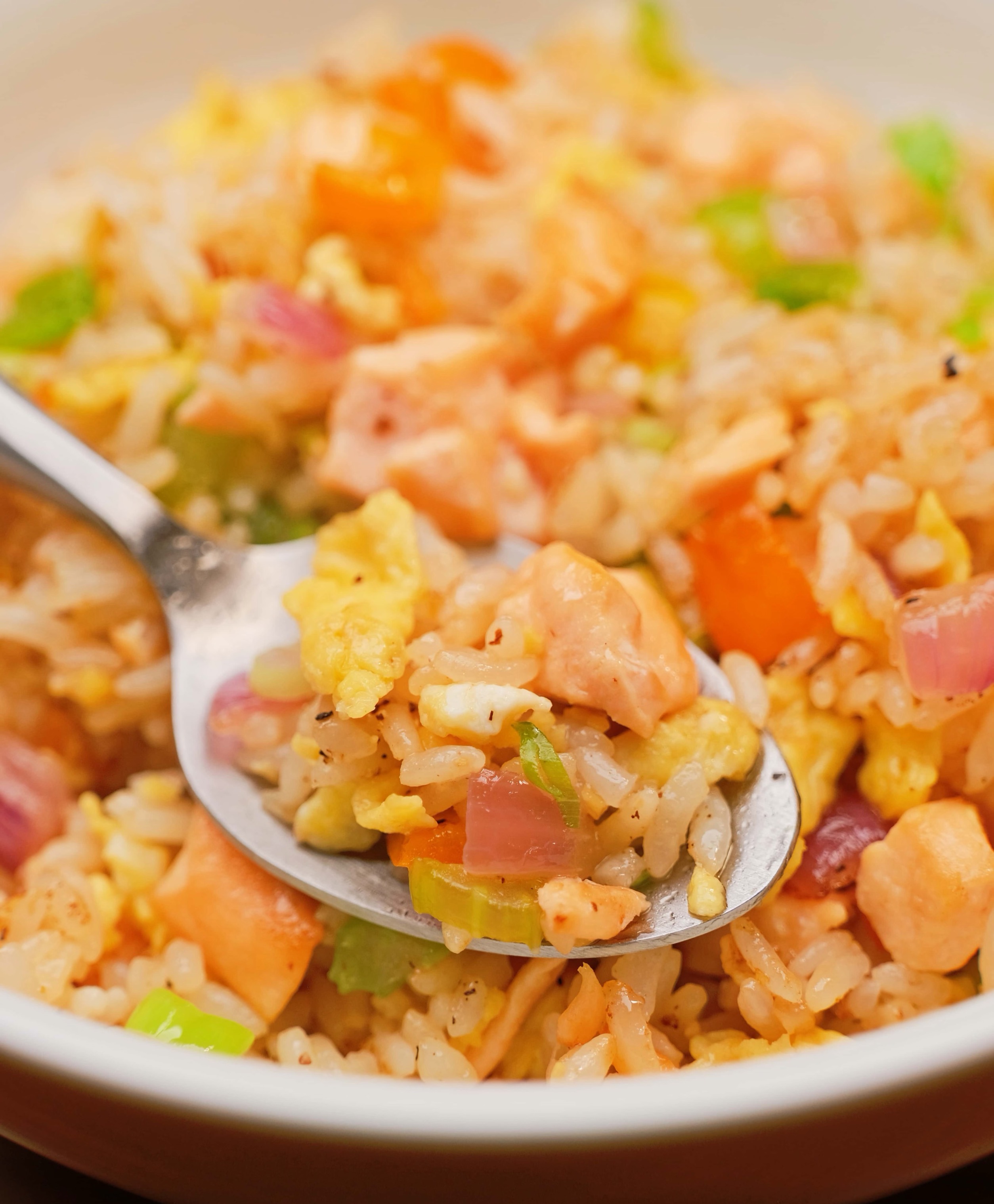 还是全家爱吃的三文鱼蛋炒饭,都快到离谱~