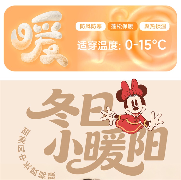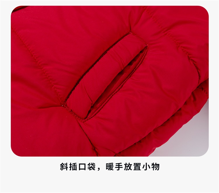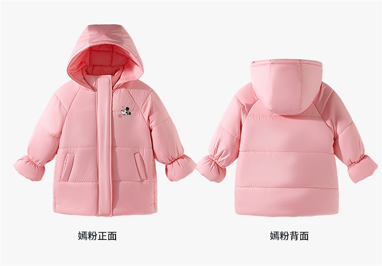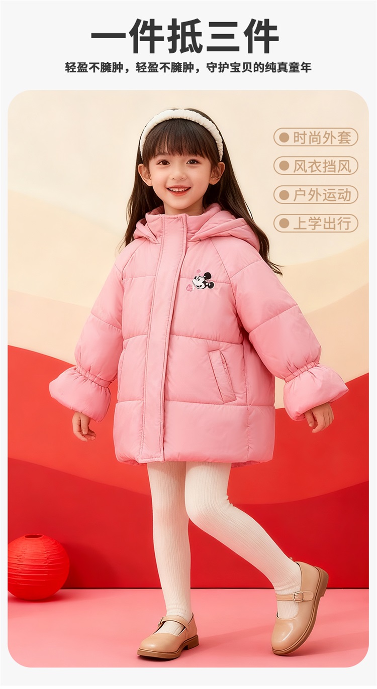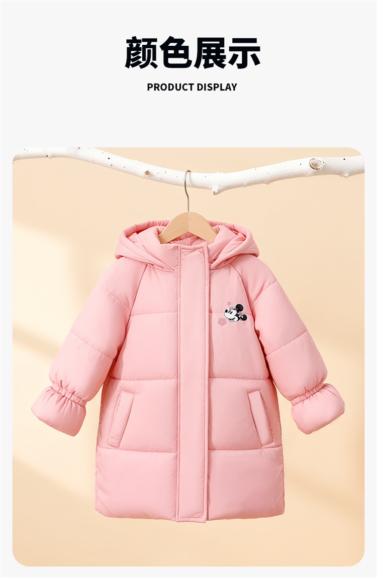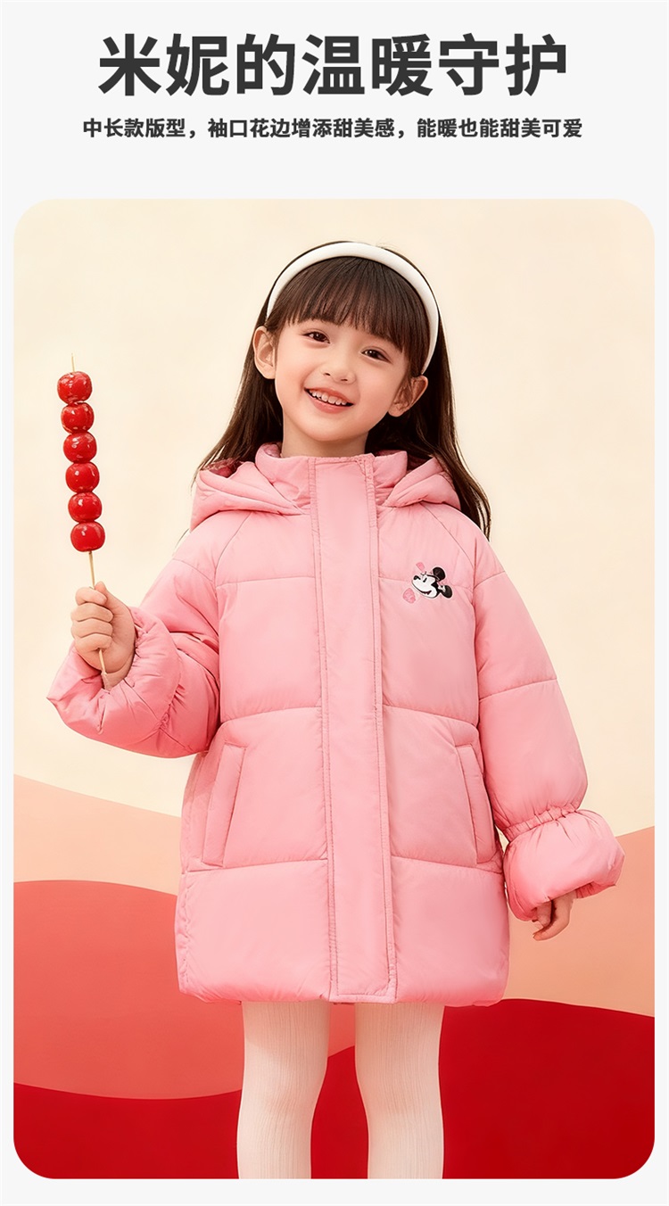 迪士尼(Disney) Baby女童夹棉保暖卡通红色喜庆外穿连帽中长款棉服秋冬新款外套