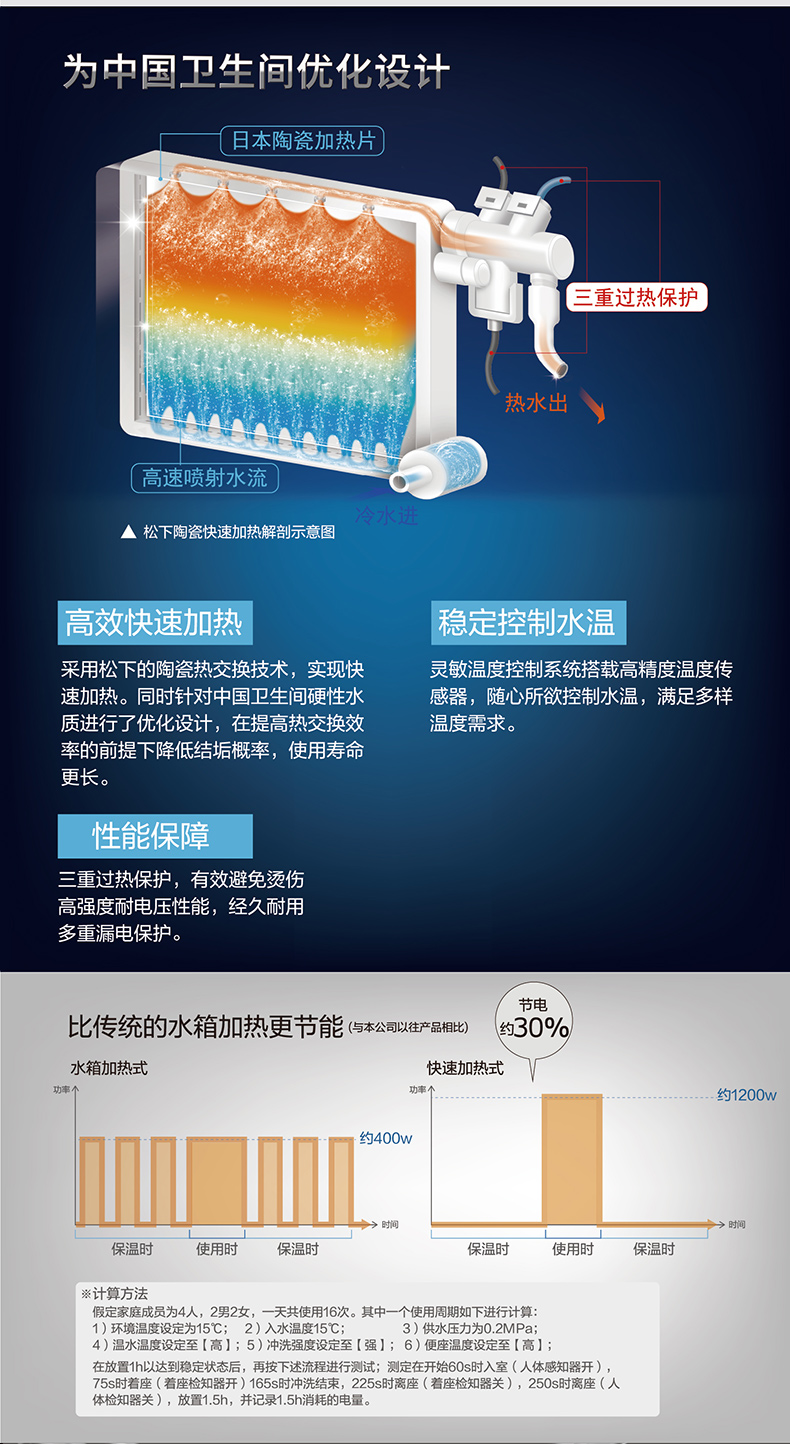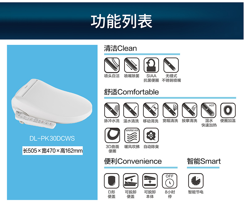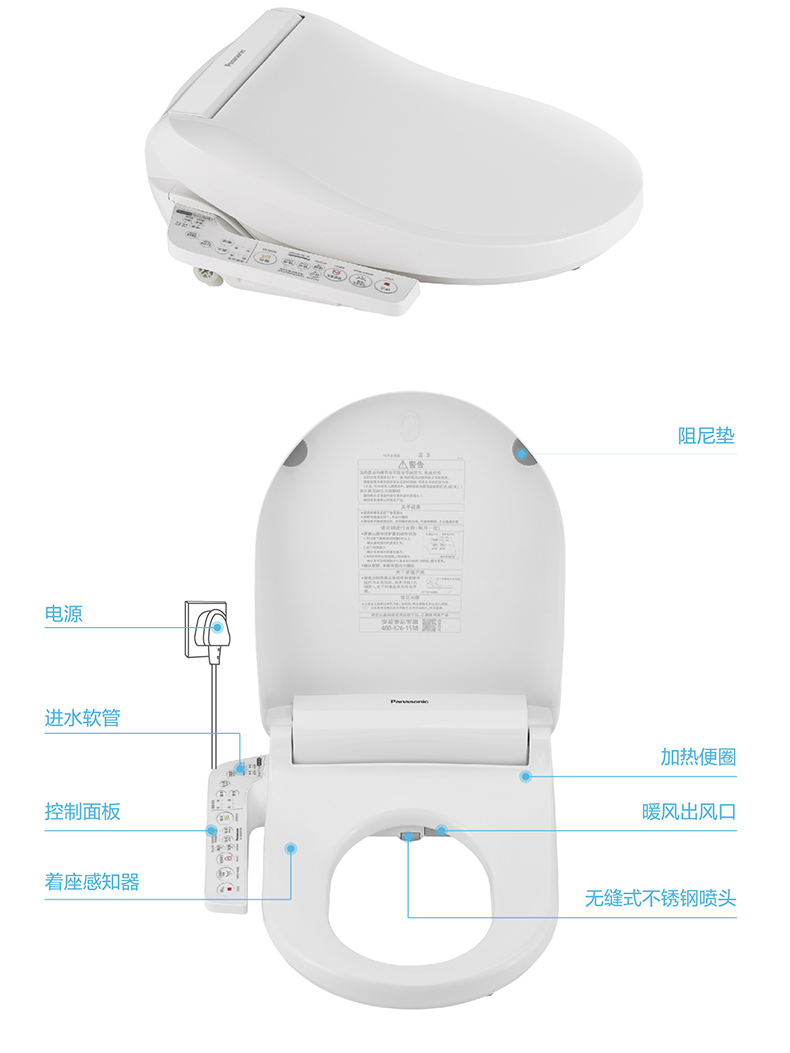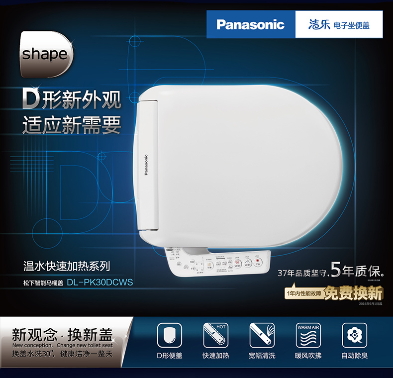 松下卫浴 松下智能马桶盖即热式日本除臭全自动家用冲洗烘干加热D型DL-PK30DCWS