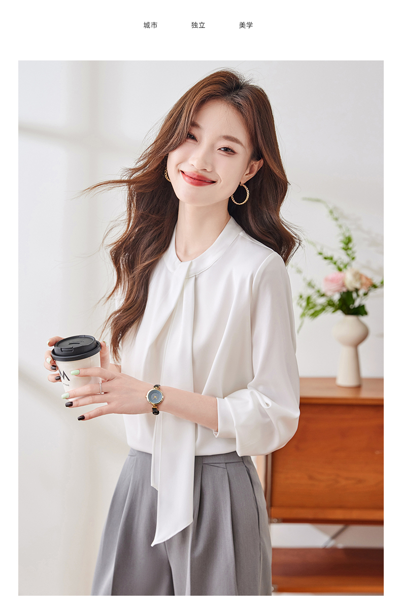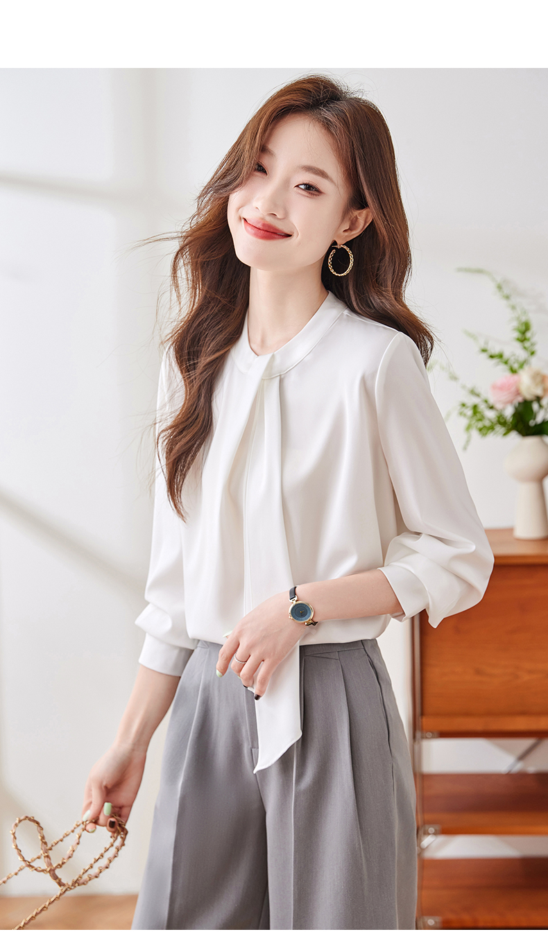 Q136新款长袖气质衬衣白色洋气时尚百搭小众设计感女士韩版衬衫