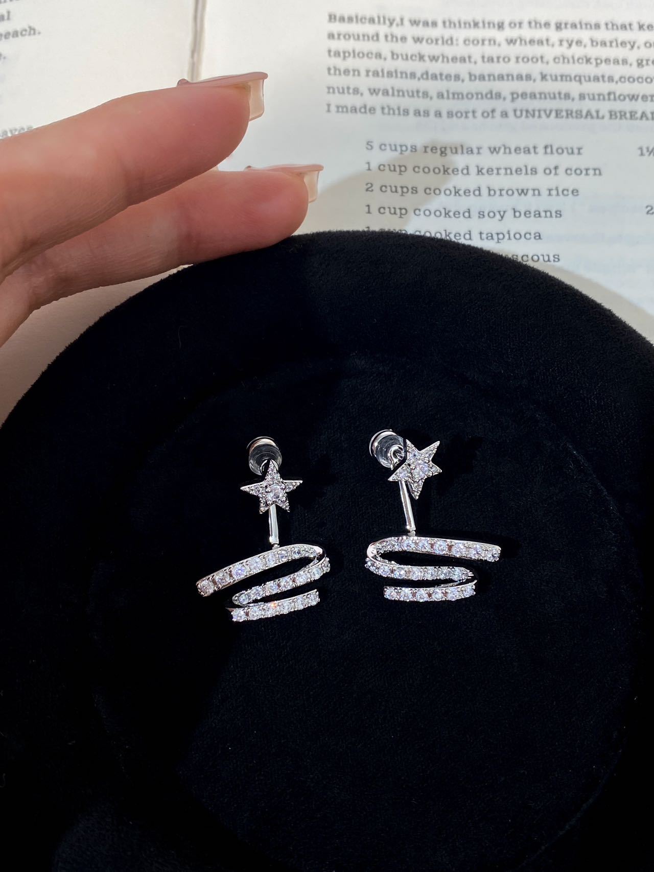 太有氛围感啦!!流星不再是转瞬即逝!明星同款星光飘带许愿耳环+流星戒指
