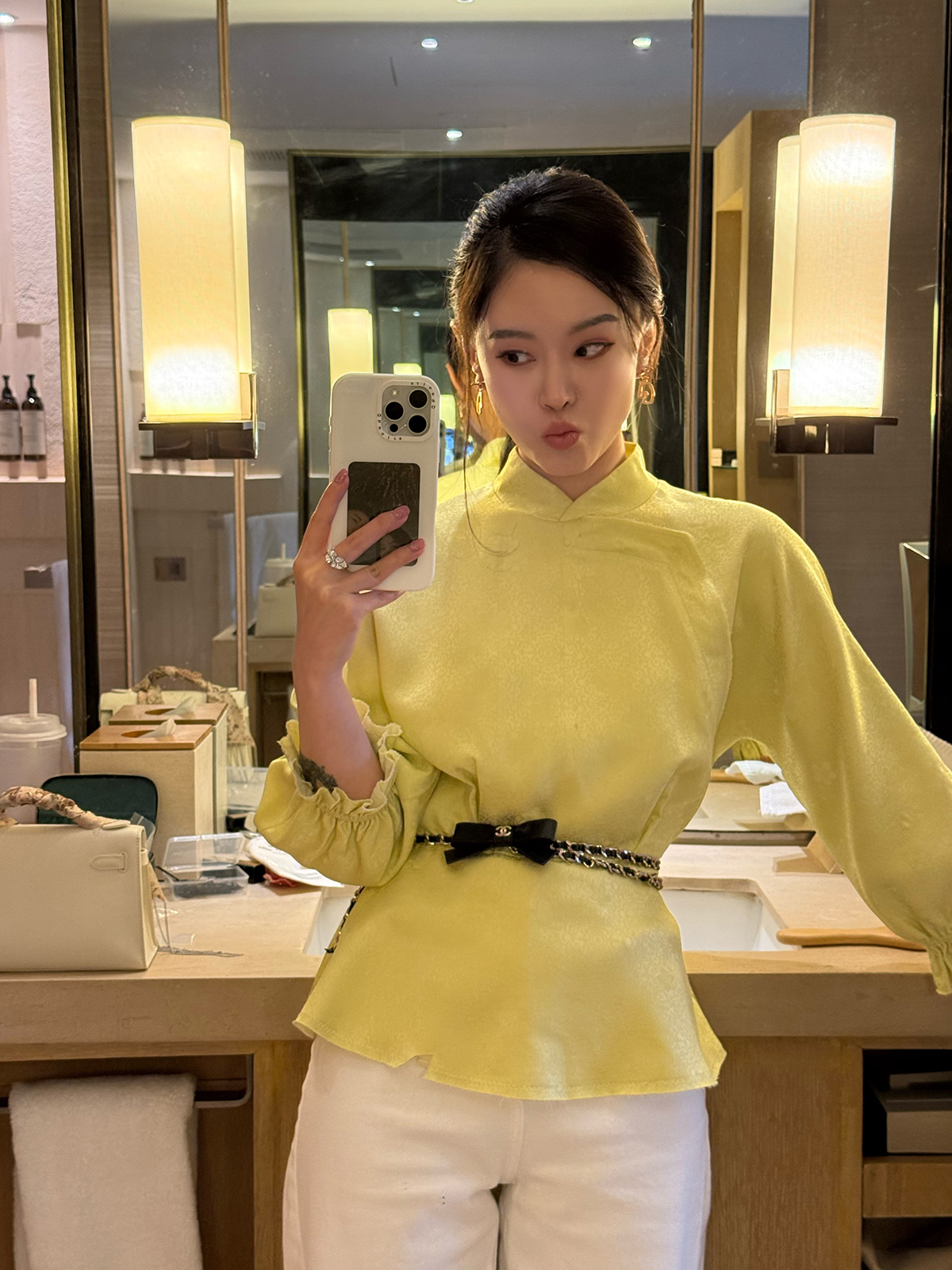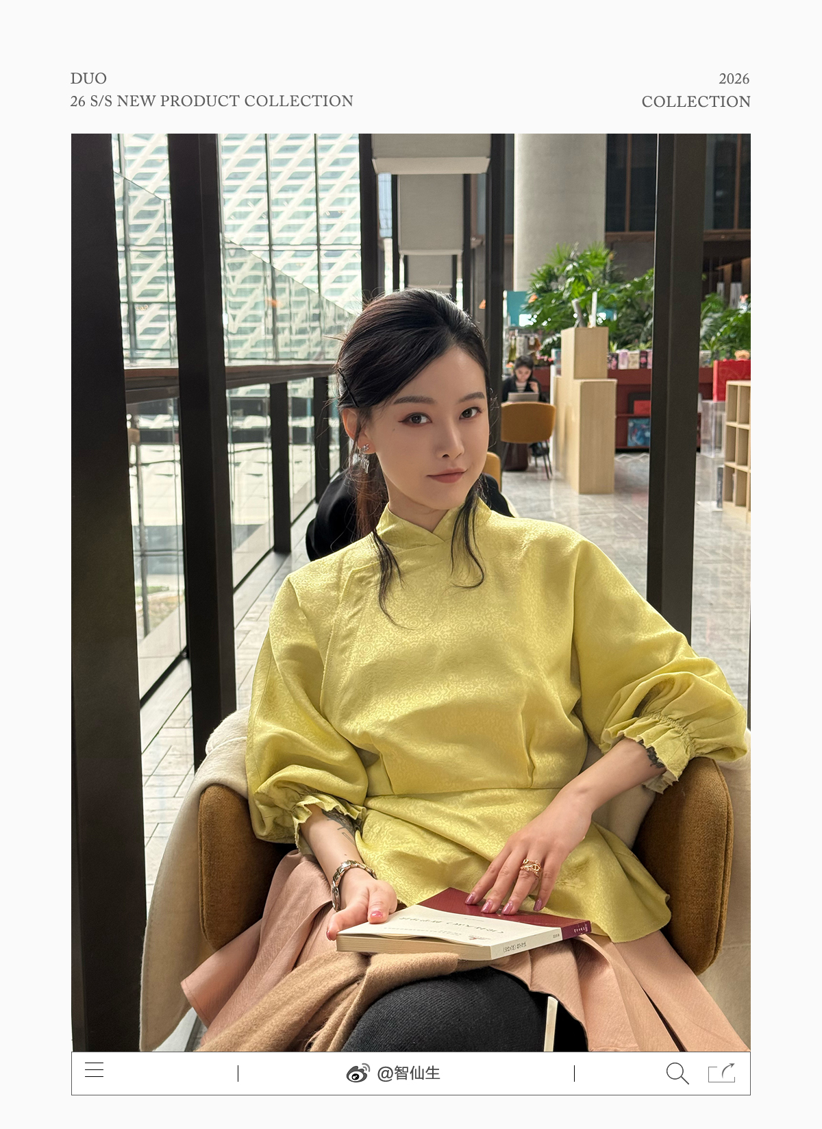 DUO智仙生 黑标 一万次春和景明 东方气质樱花新中式提花交领上衣
