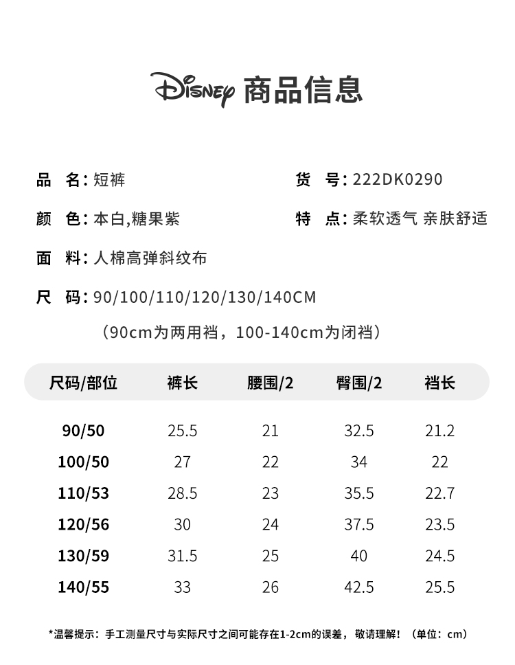 【商场同款】迪士尼(Disney)童装儿童裤子米妮清凉一夏女宝短裤轻薄凉爽年夏新品