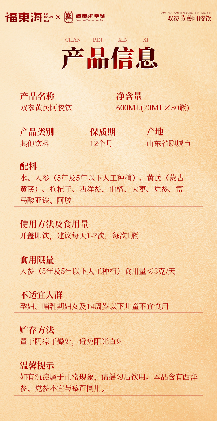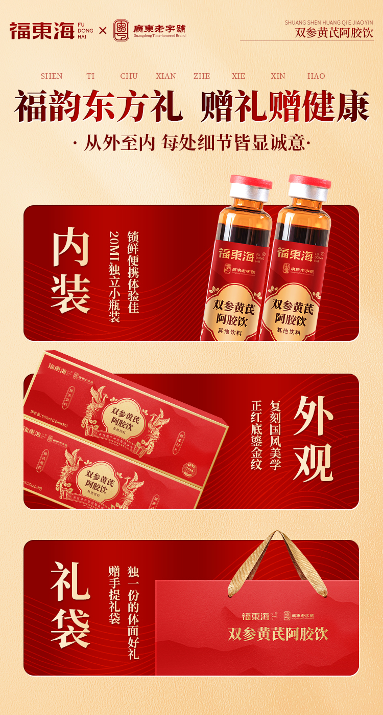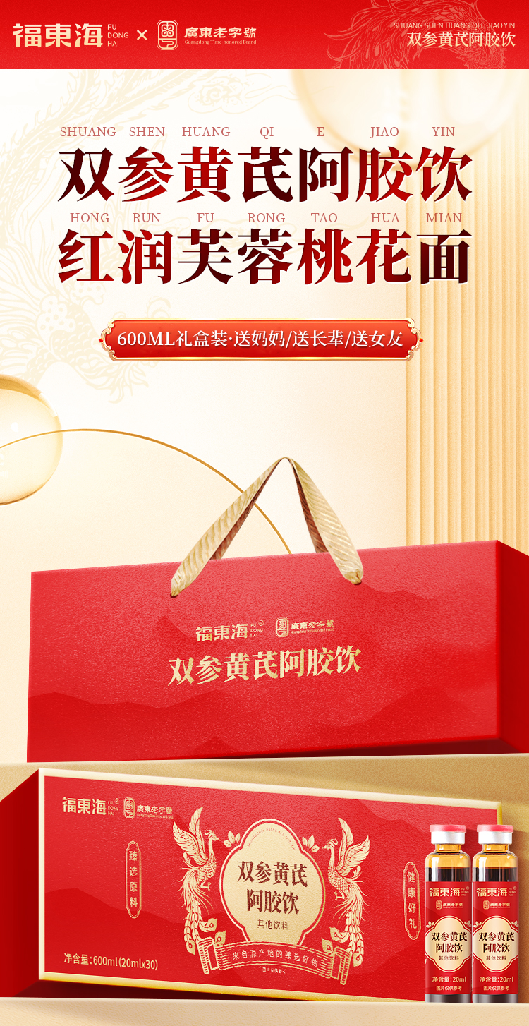 福东海 双参黄芪阿胶饮600ml深层滋养女士元气饮礼盒送礼自用