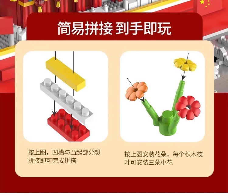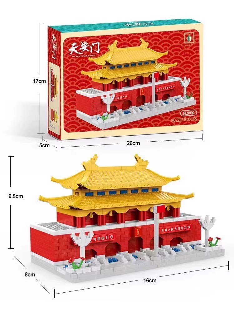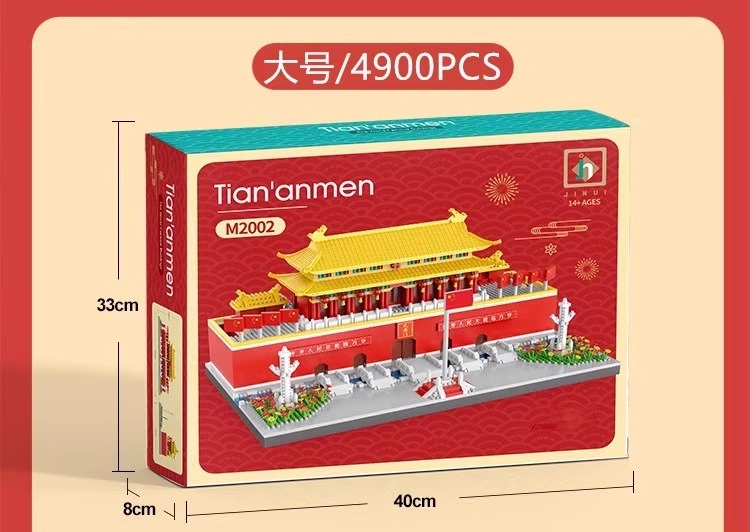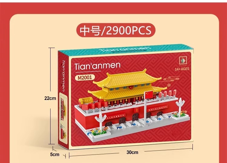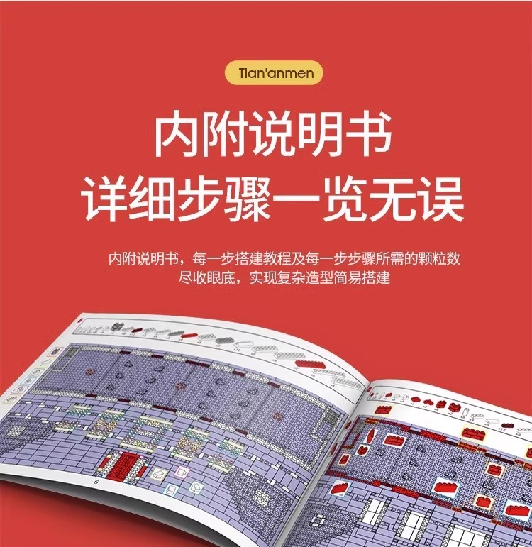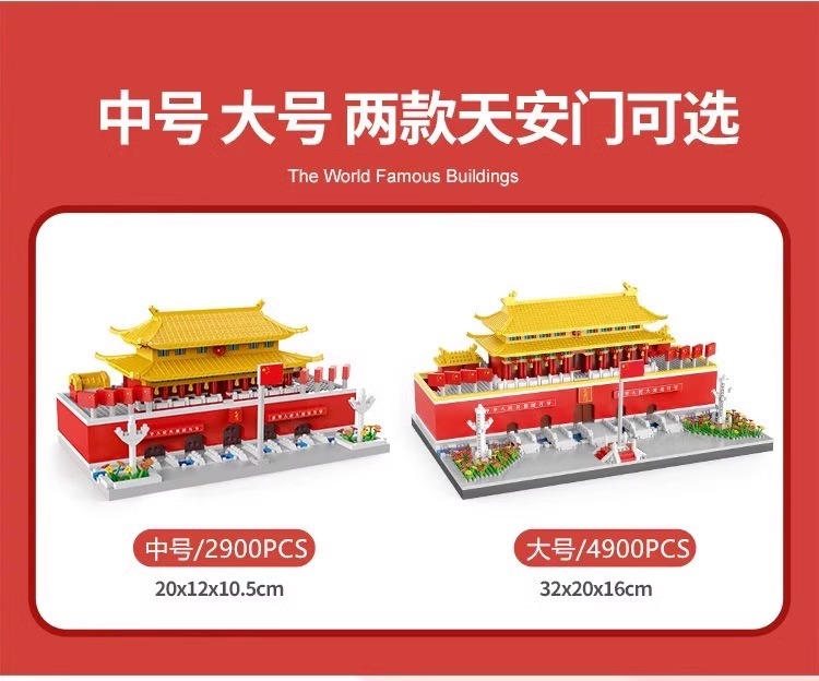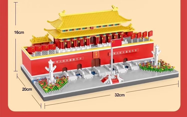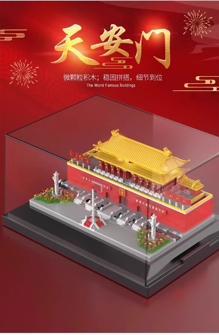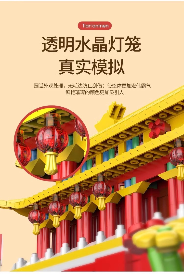 国庆节礼物!【国防教育从幼儿开始 送灯串和灯罩】 天安门积木益智拼装玩具男女孩高难度儿童拼图小颗粒春节礼物_ZSY