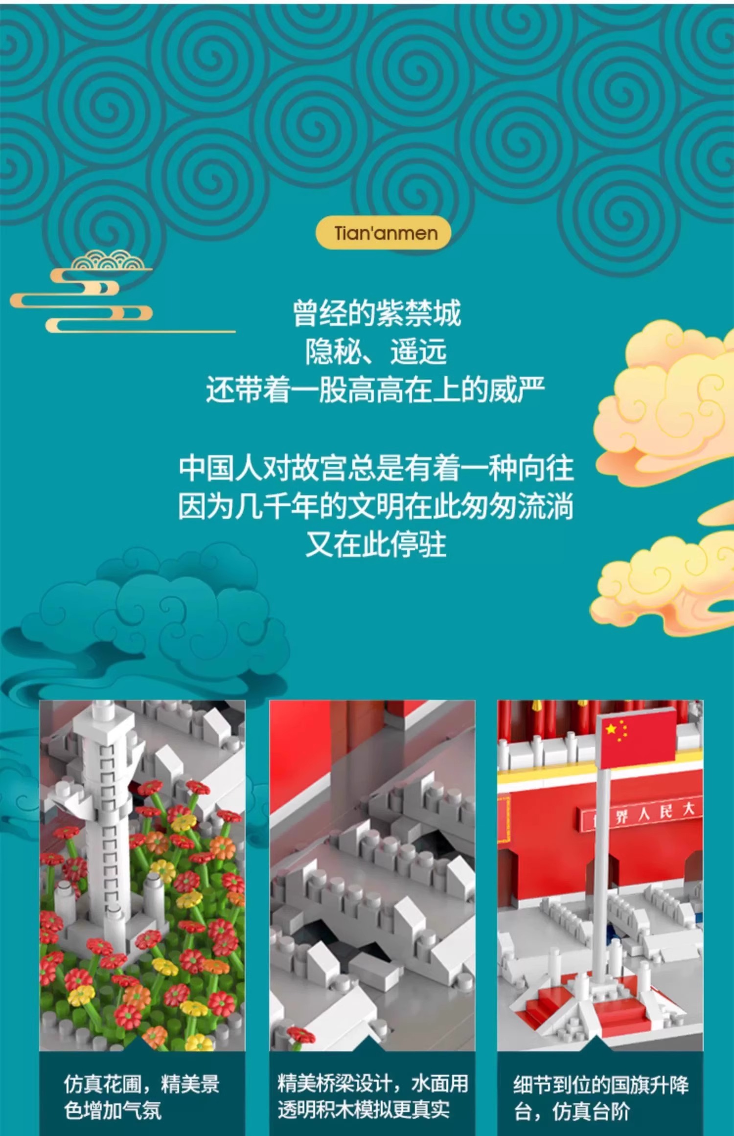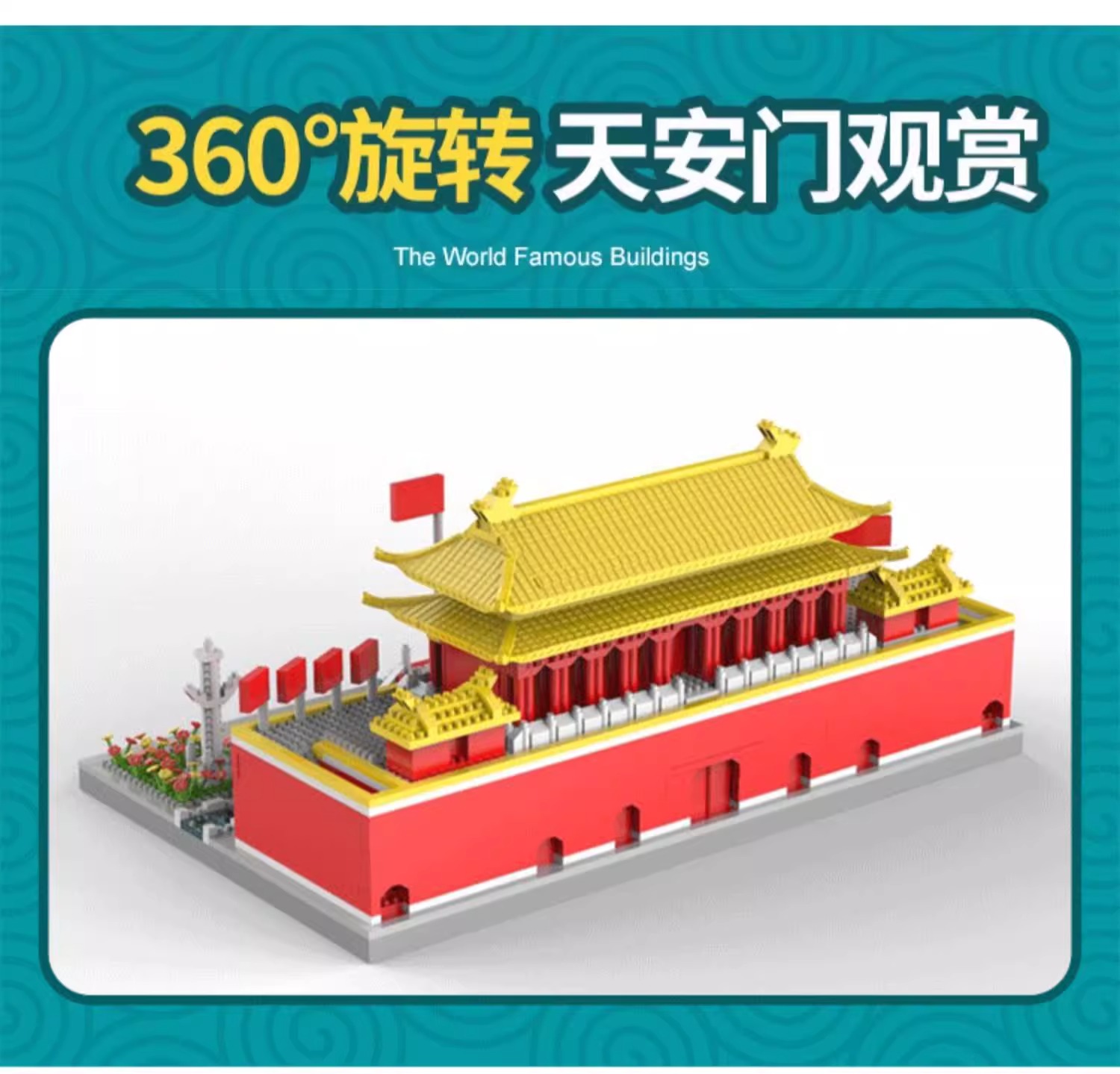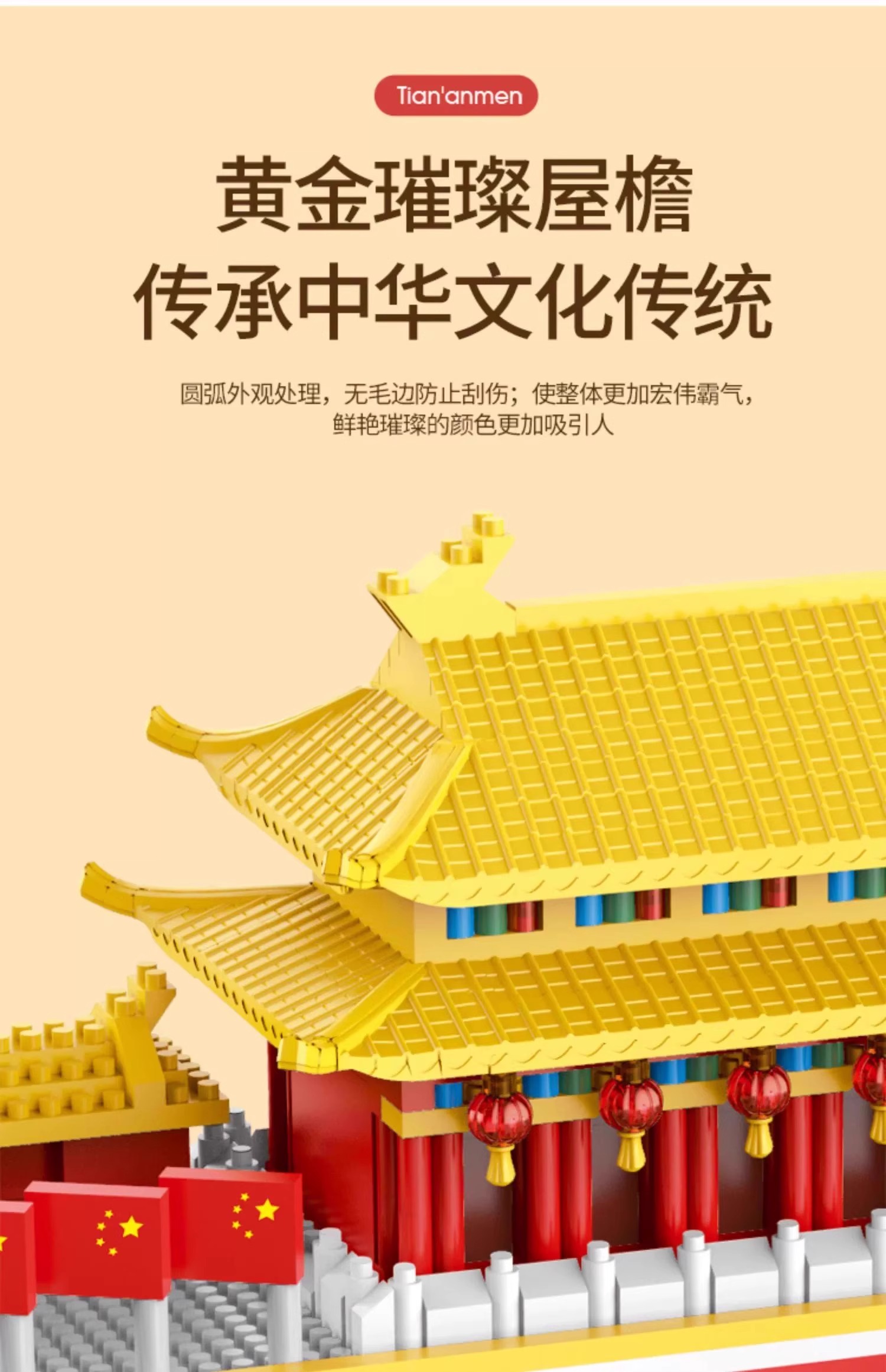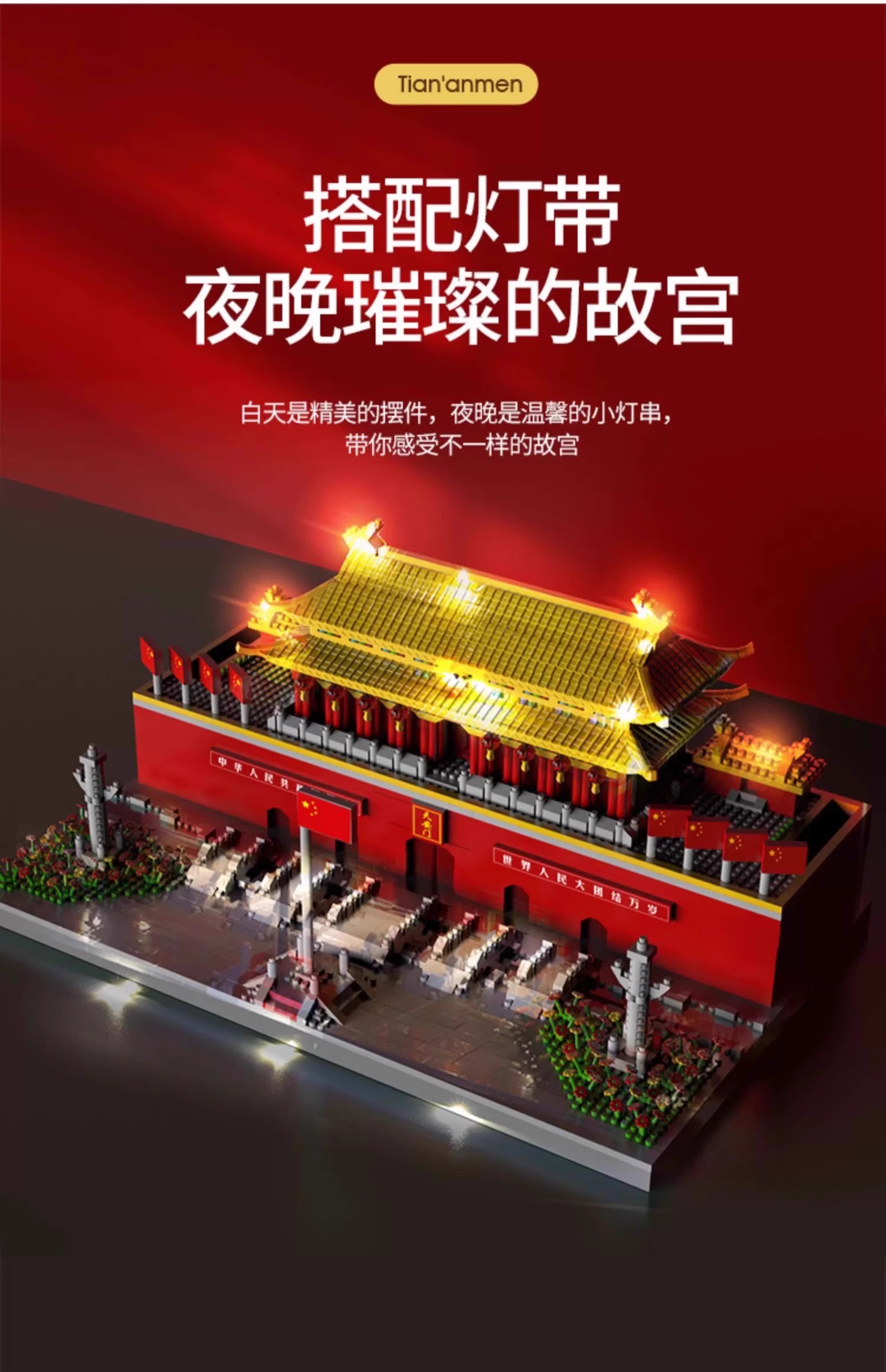 国庆节礼物!【国防教育从幼儿开始 送灯串和灯罩】 天安门积木益智拼装玩具男女孩高难度儿童拼图小颗粒春节礼物_ZSY