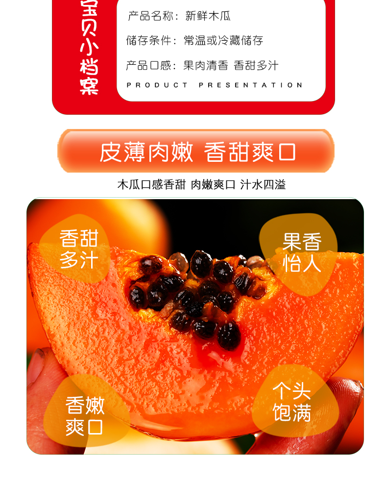 【自然树上熟】雷州冰糖红心木瓜 果香浓郁 甜蜜多汁 细腻爽口 收到可直接吃的快乐