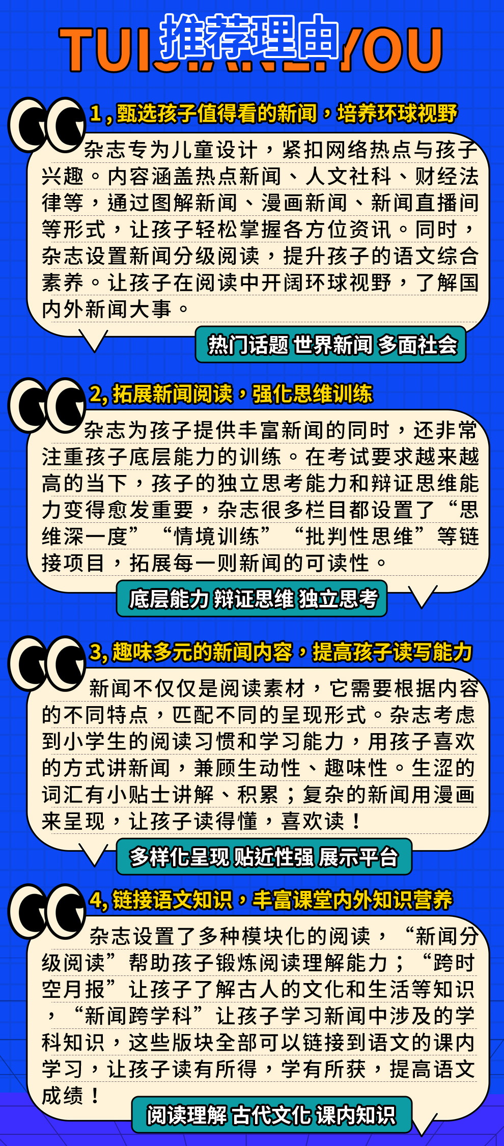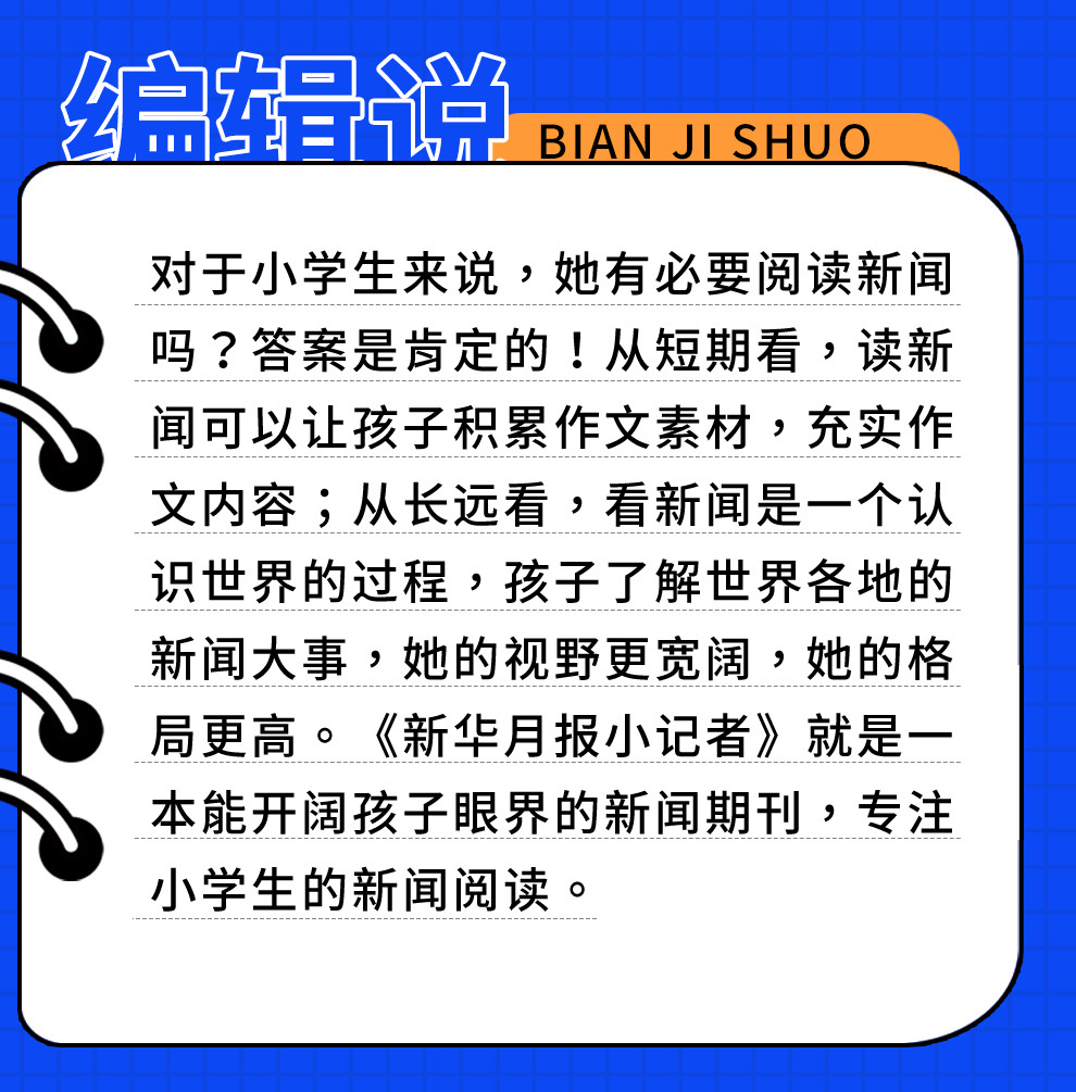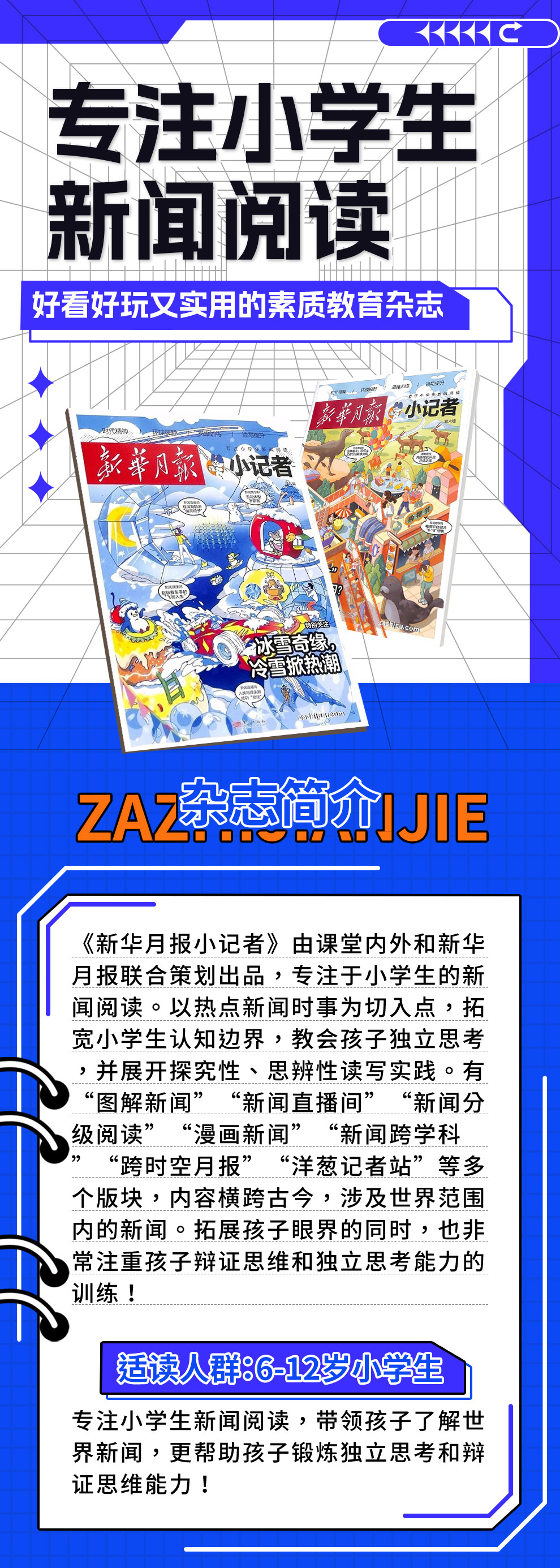 新华月报小记者 (一年共12期) 是一本以小学3-6年级为主, 兼顾1、2年级的小学生时政新闻杂志