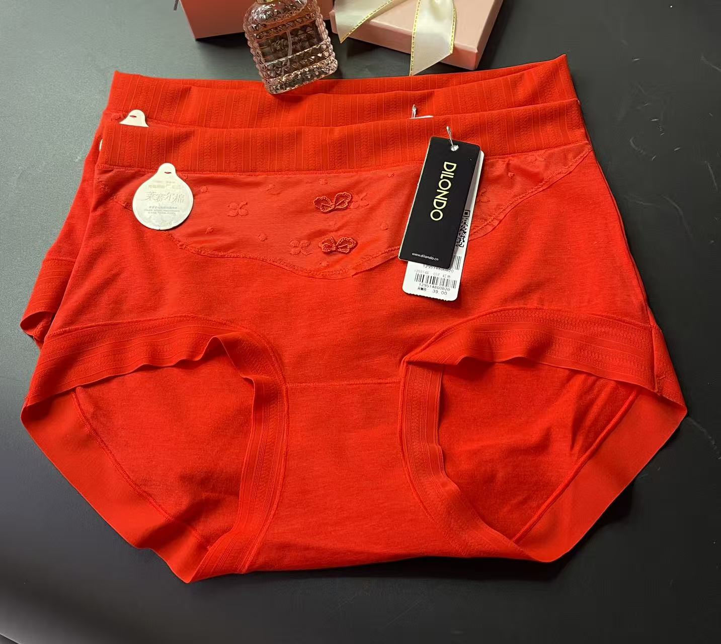 喜庆大红色莫代尔棉中腰内裤舒适透气1295147-48