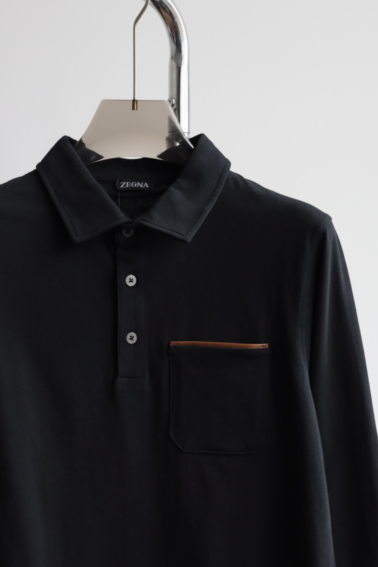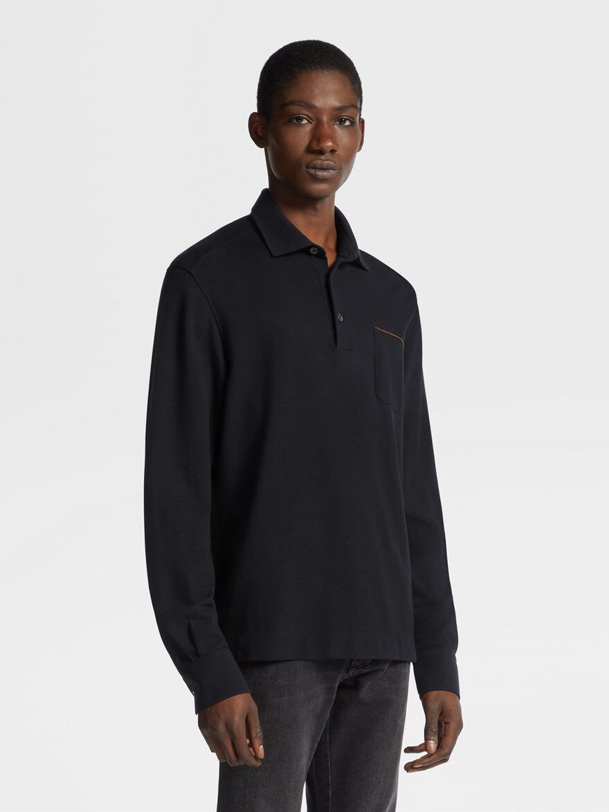 此款翻领长袖以平纹全棉洗水针织而成,质感柔软,透气性佳