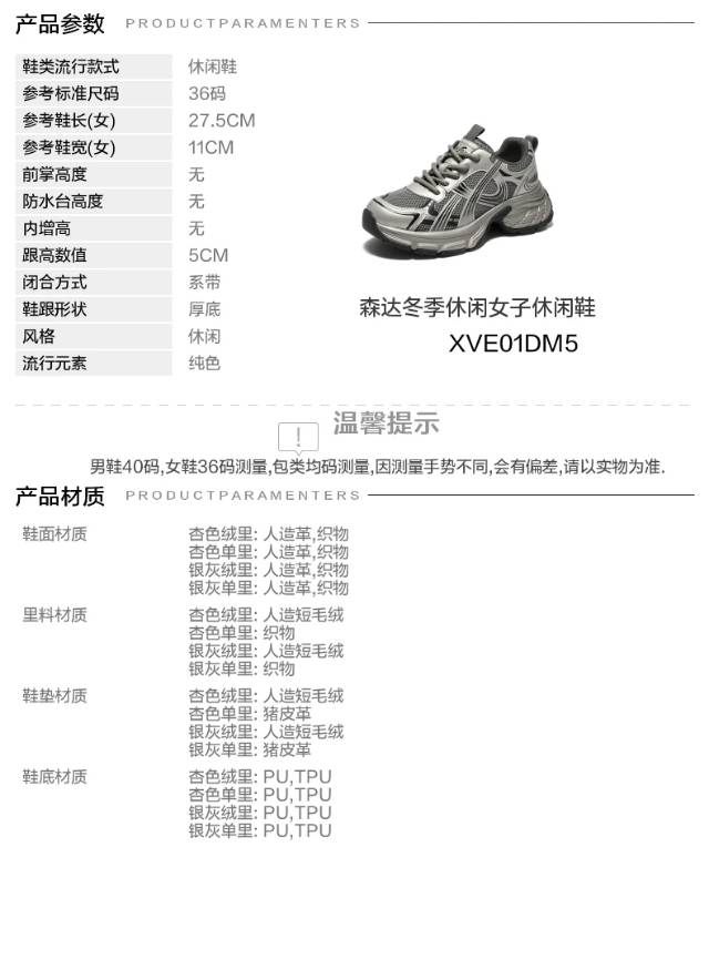 【云粉节】BF楼 森达厚底老爹鞋2025冬季新款新款增高休闲鞋XVE01吊牌价899活动价399