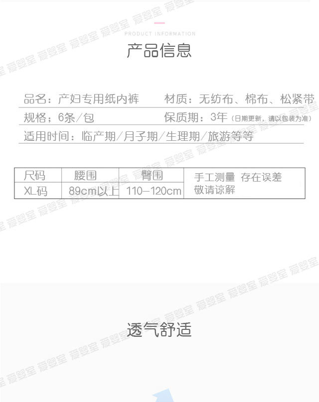 开丽6条装产妇专用纸内裤