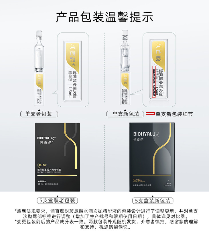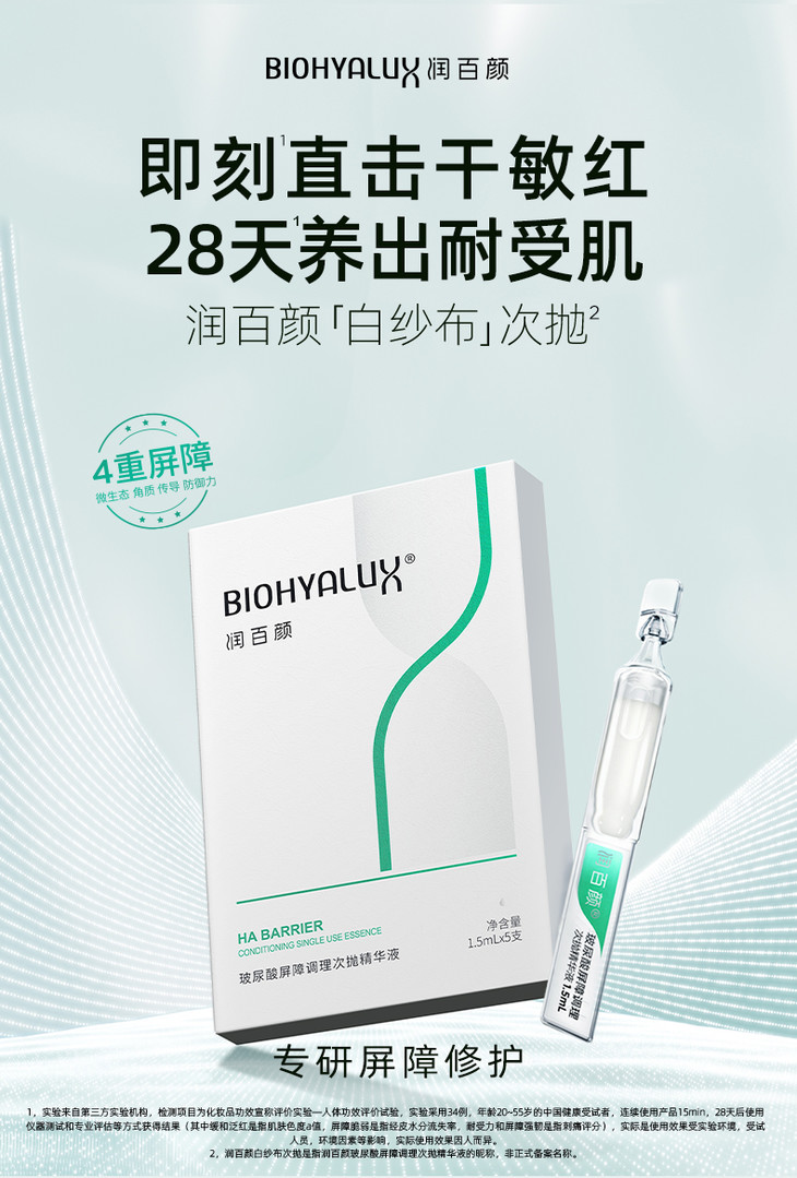 现货▲升级水润!润百颜玻尿酸屏障调理次抛精华 强韧肌肤 修护干敏肌 舒缓泛红 1.5ml*5支