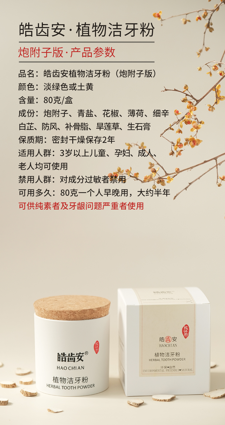 皓齿安植物洁牙粉(80克)陈修园古方+炮附子,洁牙护齿护龈