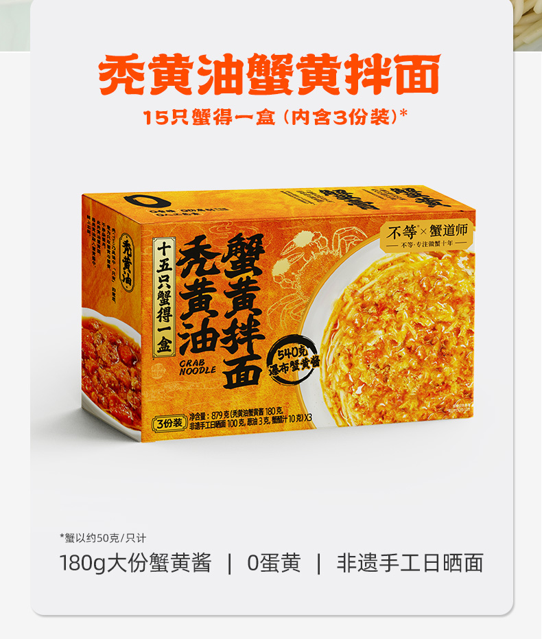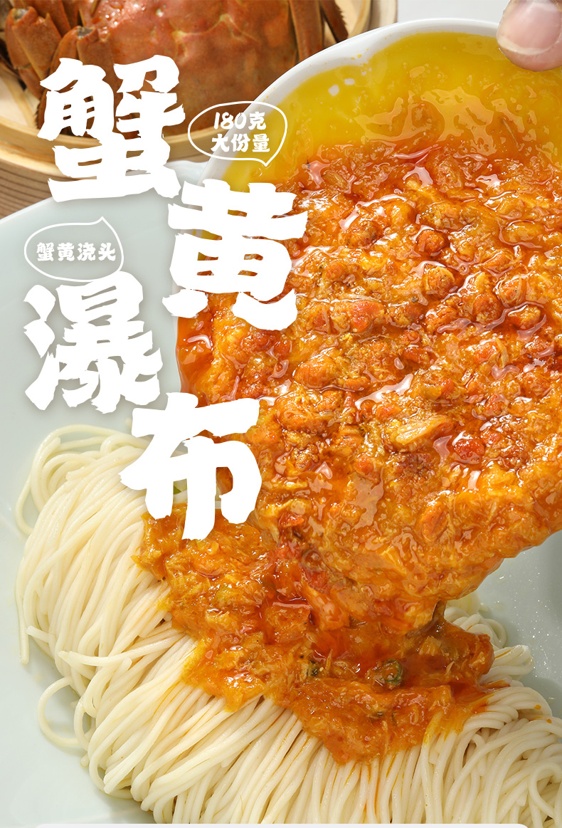 不等 秃黄油蟹黄拌面蟹粉面方便速食面蟹黄蟹肉180克瀑布蟹黄酱