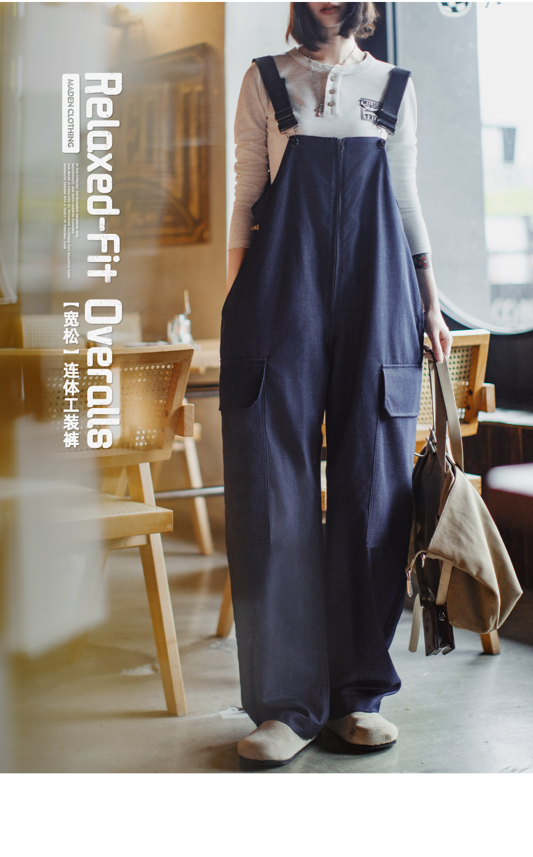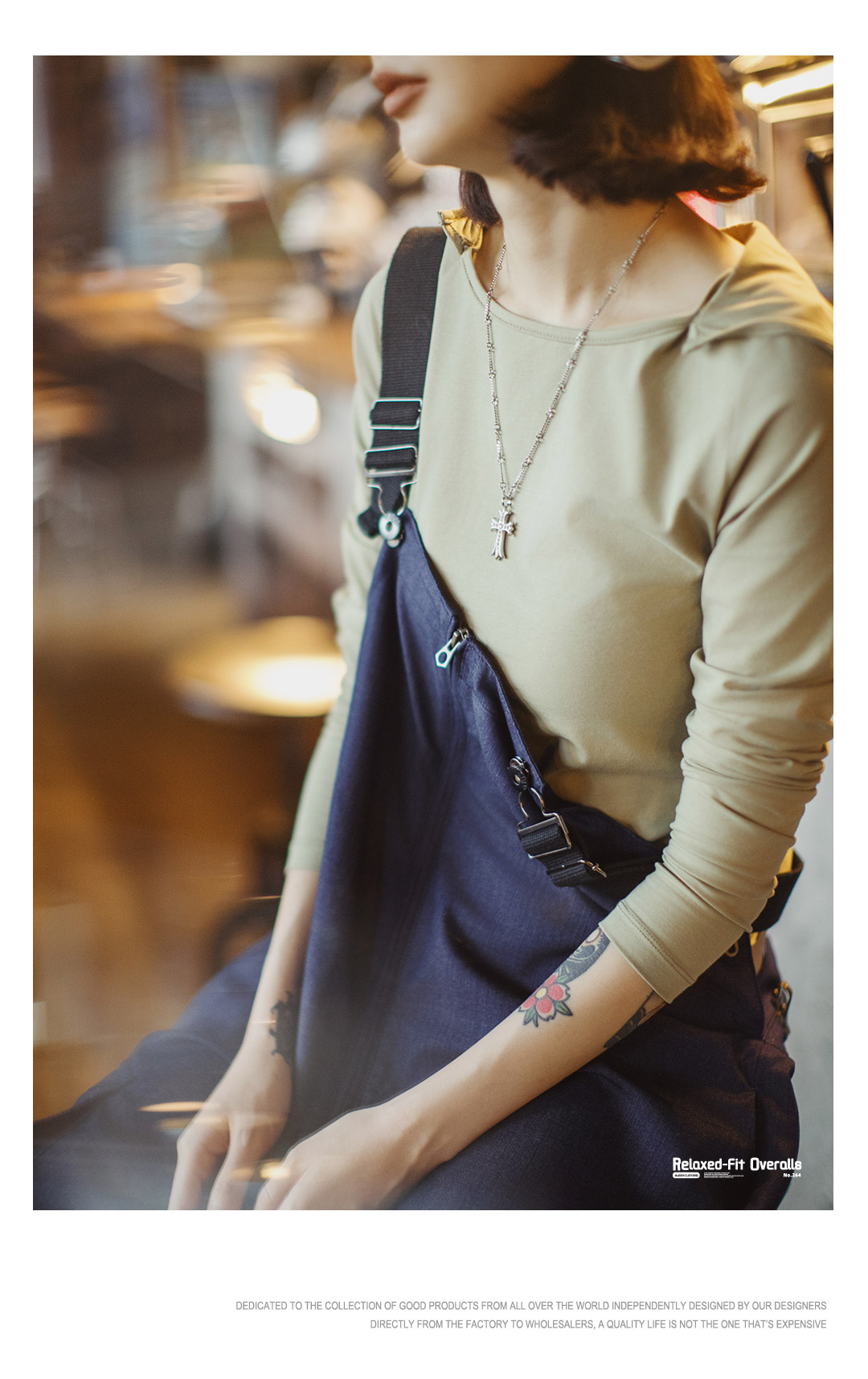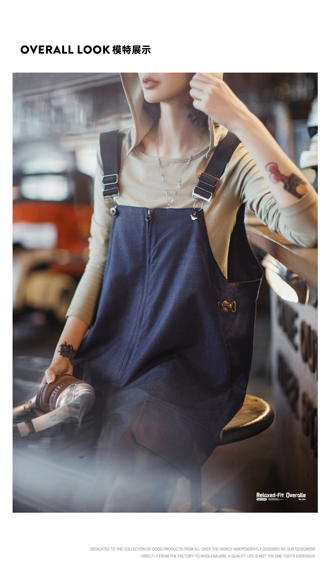 马登高腰牛仔直筒阔腿宽松弛工装背带裤无袖吊带长款连衣裤女士秋