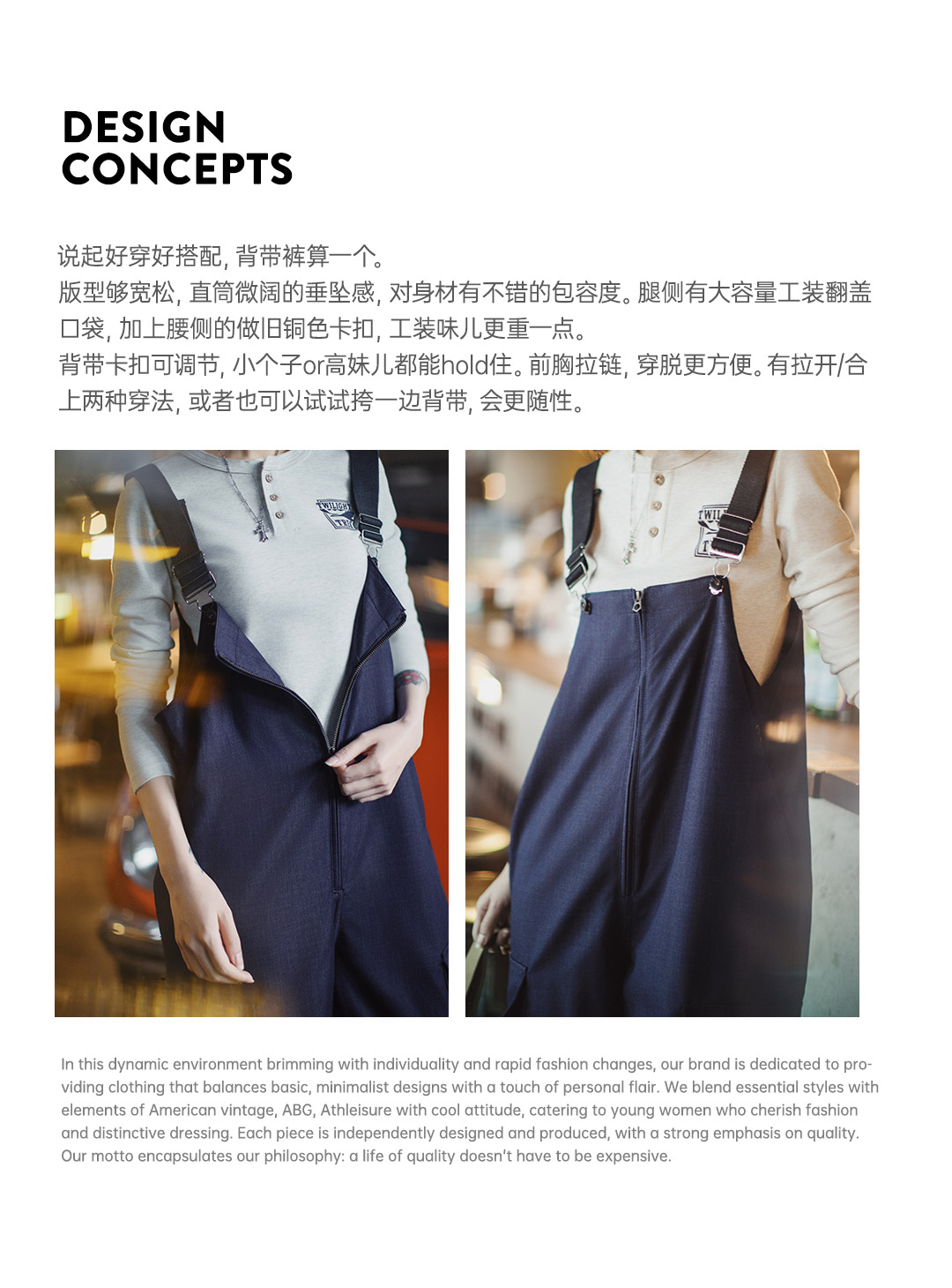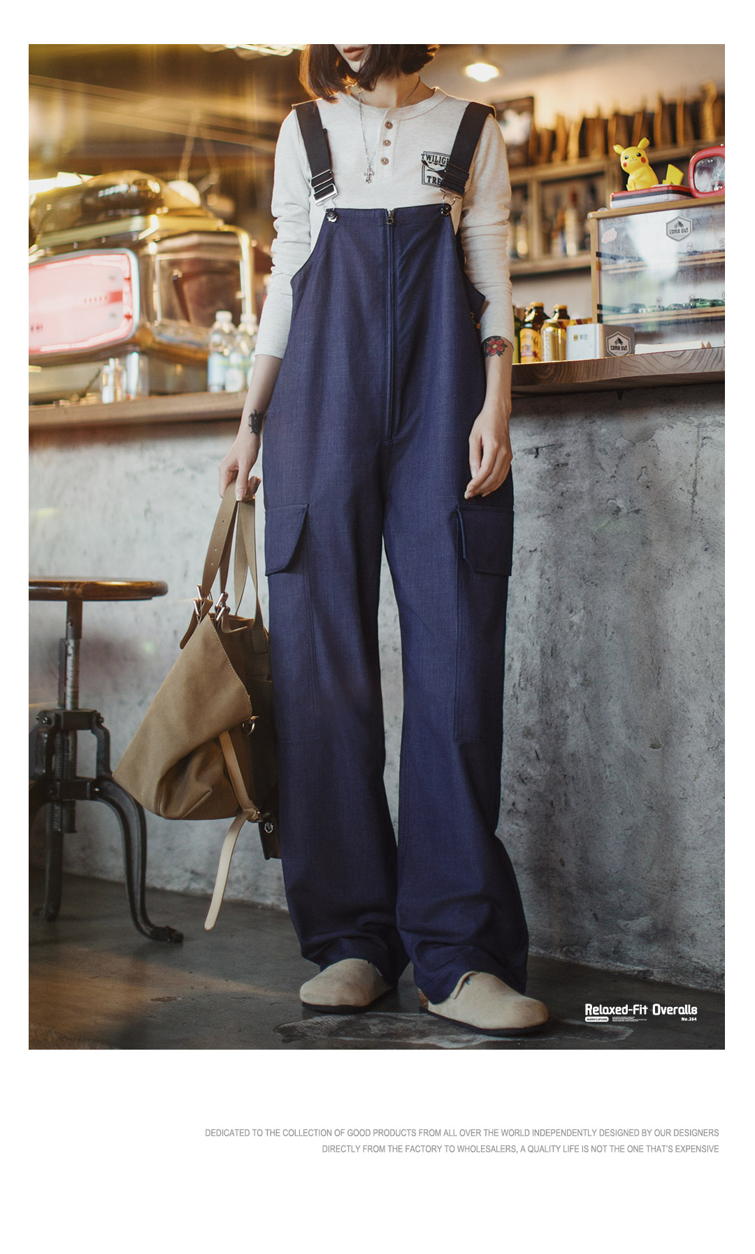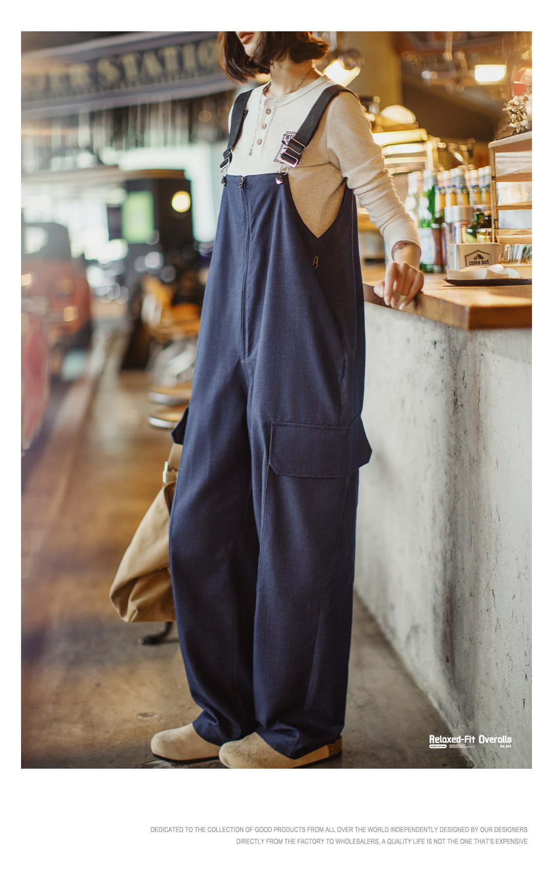 马登高腰牛仔直筒阔腿宽松弛工装背带裤无袖吊带长款连衣裤女士秋