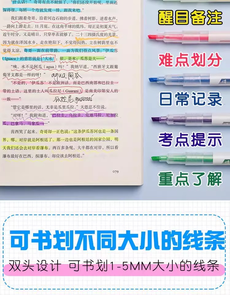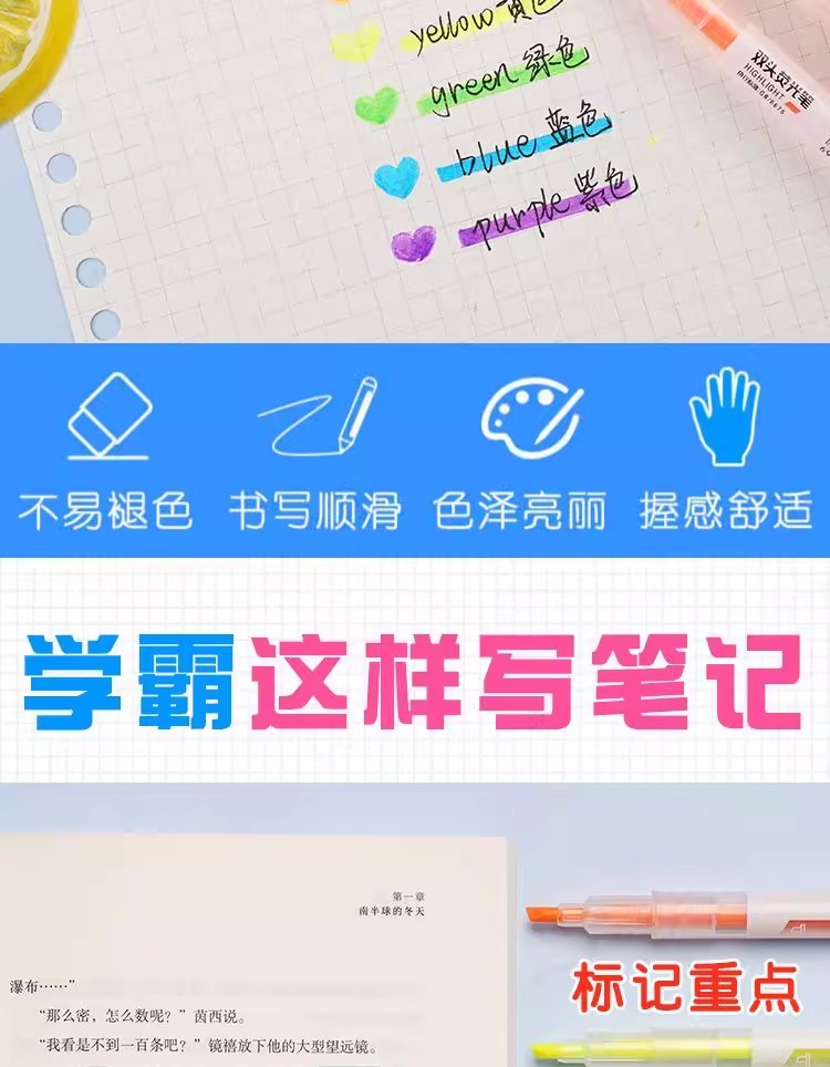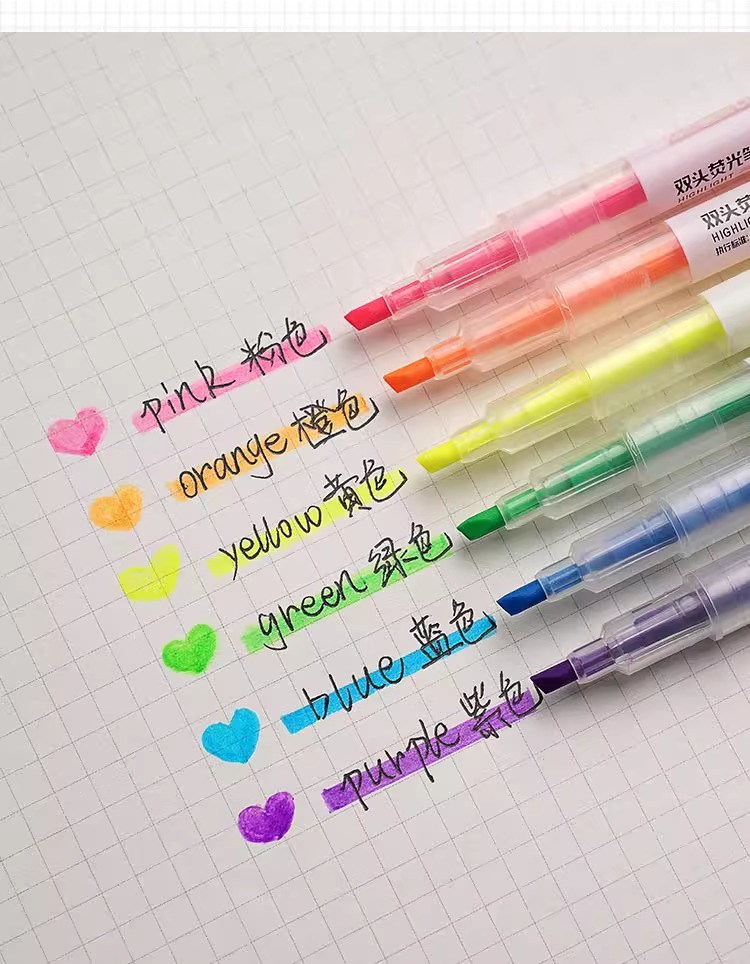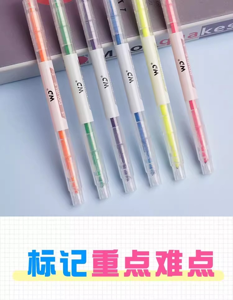 单双头荧光笔高颜值莹光笔套装荧光标记笔学生用彩色记号笔手账笔
