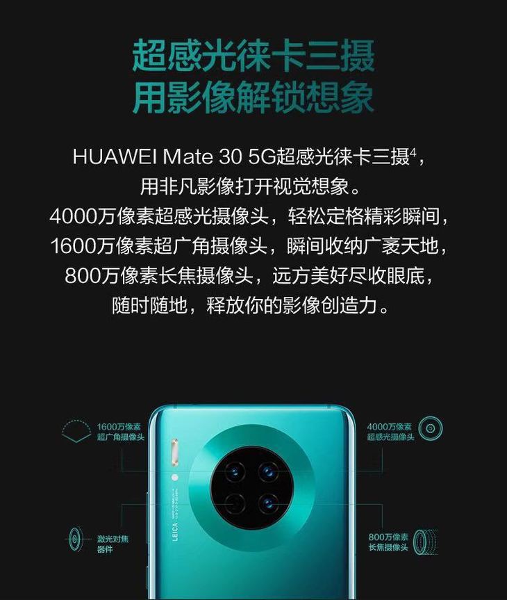 【华为标配】5G手机 HUWEI Mate30 全网通 4000万超感光徕卡三摄