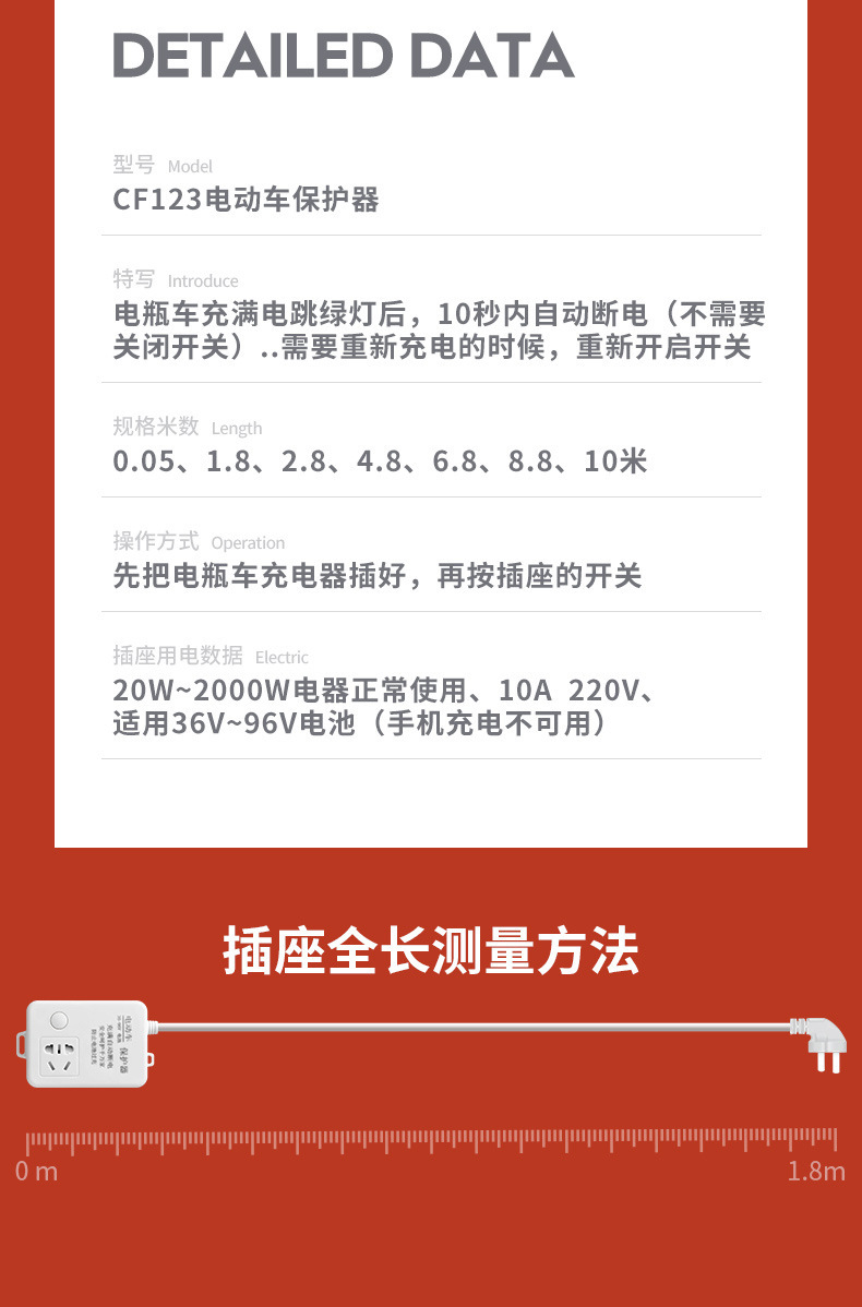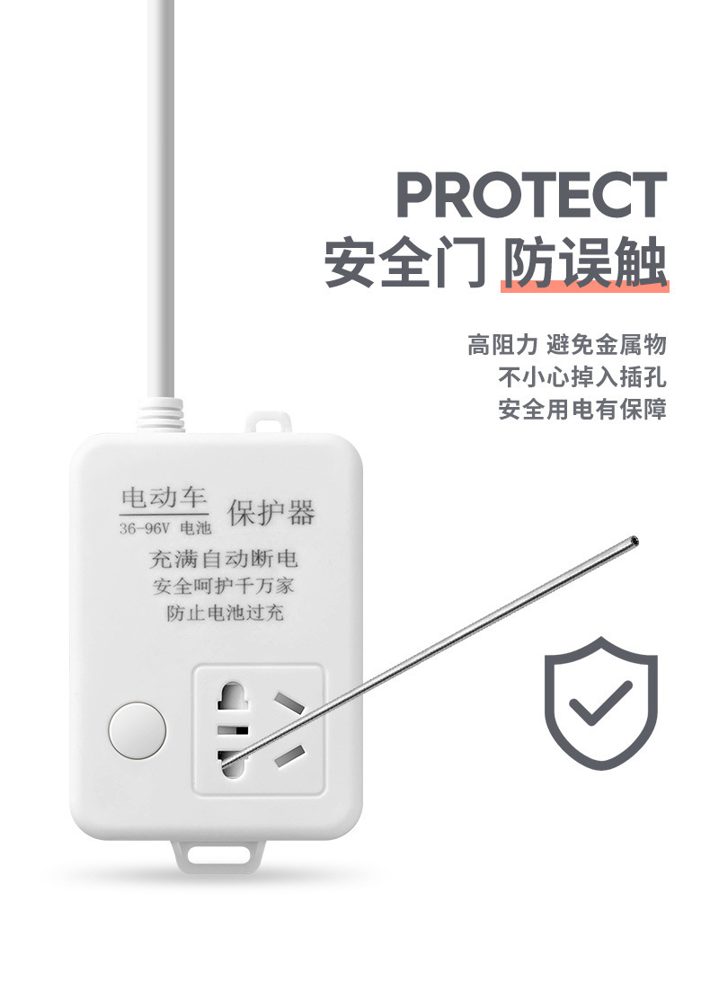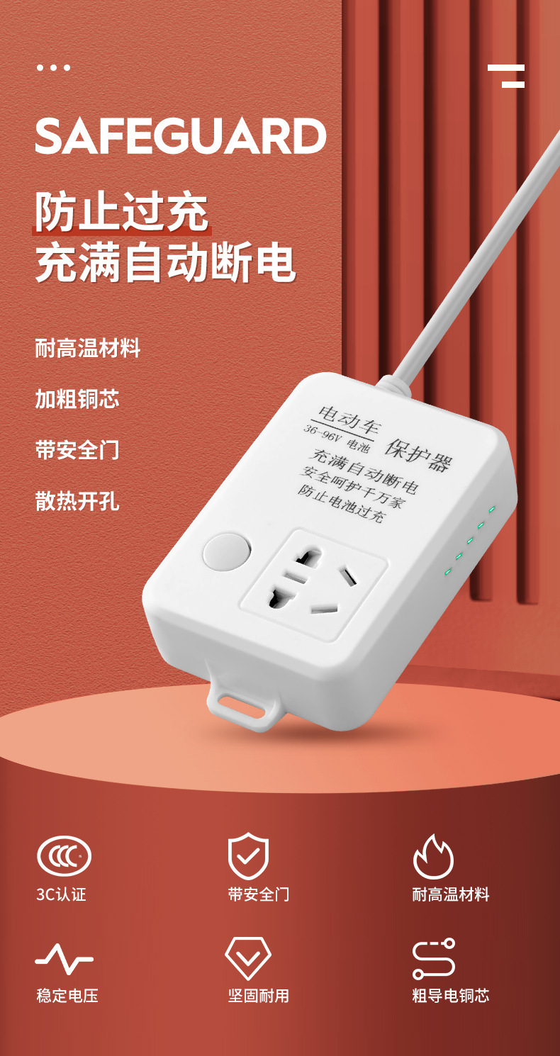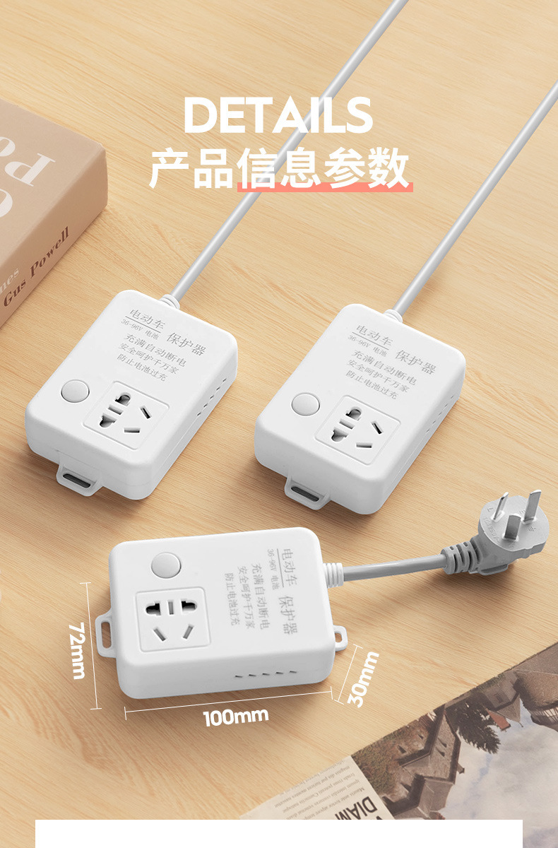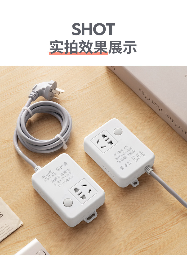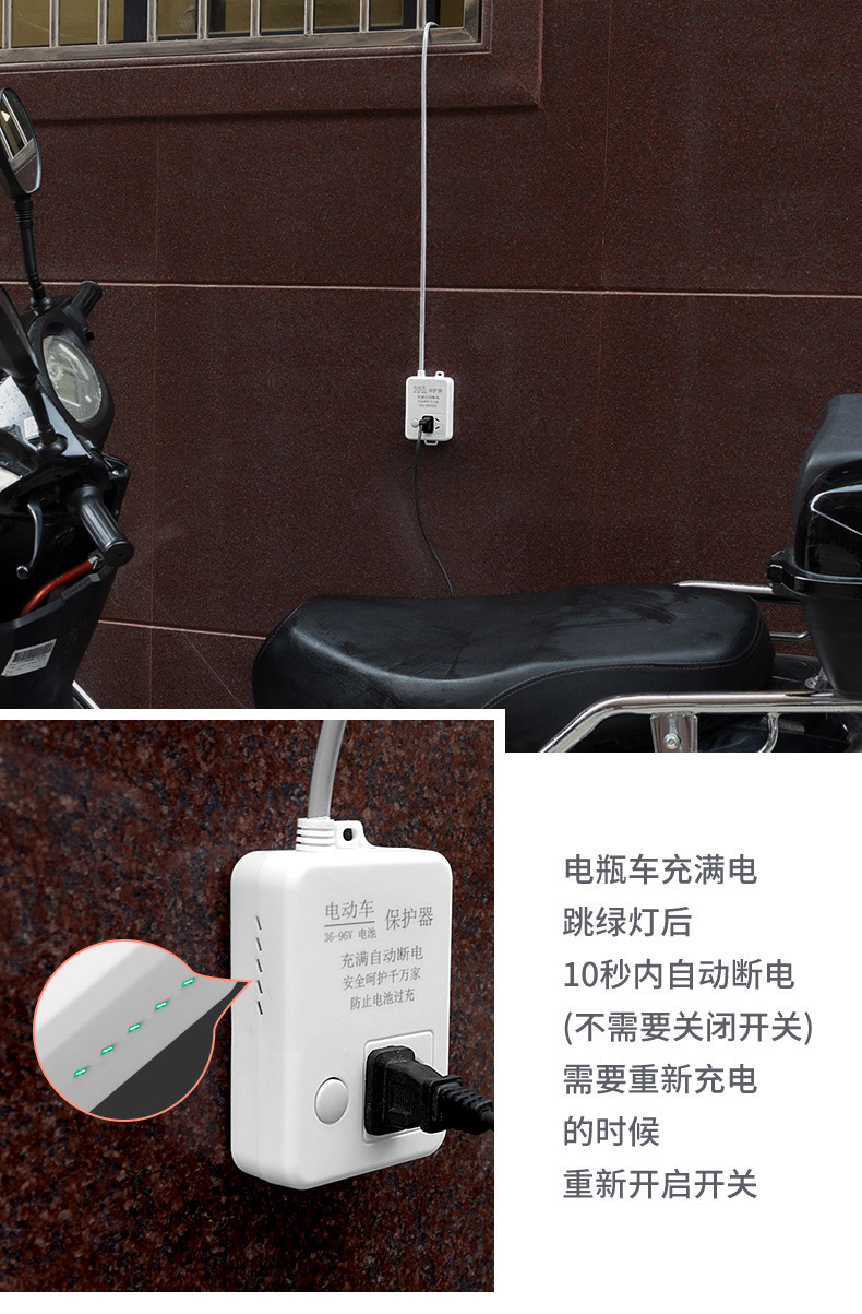 严选电动车过充保护器 5孔4.8米 电瓶车充电器插座充满自动断电精准充电延长线插排座1个